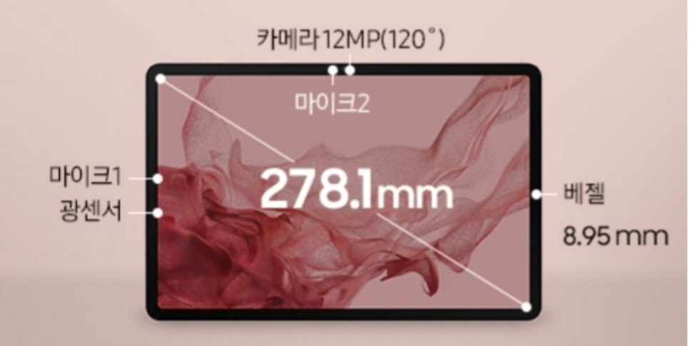 갤럭시탭 S8 제품 인치수는 대각선 길이 278.1mm 11인치로 갤럭시탭 S8 시리즈 중 제일 작은 사이즈입니다. 패널은 LTPS LCD를 사용하기 때문에 번인 형상으로 자유로워 패널 수명이 긴 장점을 가지고 있지만 블랙 색상을 표현 못하기에 화질이 조금 떨어질 수 있습니다.