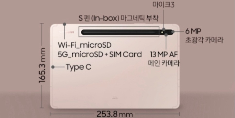 무게는 503g(Wi-Fi), 507g(5G)로 휴대하기에 정말 가볍게 출시를 했고 두께 또한 6.3mm로 얇게 출시했습니다.