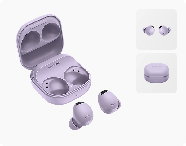 ▼갤럭시 버즈2 프로 색상은 왼쪽부터 보라 퍼플, 그라파이트, 화이트 총 세 가지 색상으로 출시했으며, 전작 대비 달라진 점이 있다면 이어버드 디자인이 변경되었고 매트한 질감과 부드러운 느낌을 전달해 프리미엄 블루투스 이어폰 느낌이 나게 만들었습니다.