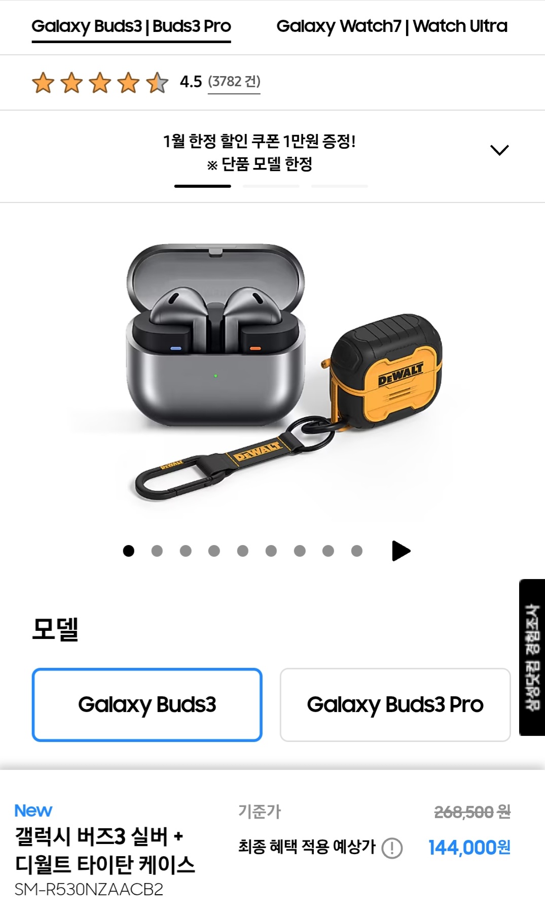 삼성닷컴에서 구매하고 갤럭시 버즈3 충전 케이스를 보호할 수 있는 케이스까지 144,000원에 케이스도 받을 수 있다는 점은 좋은 혜택이 아닌가 싶은데요.