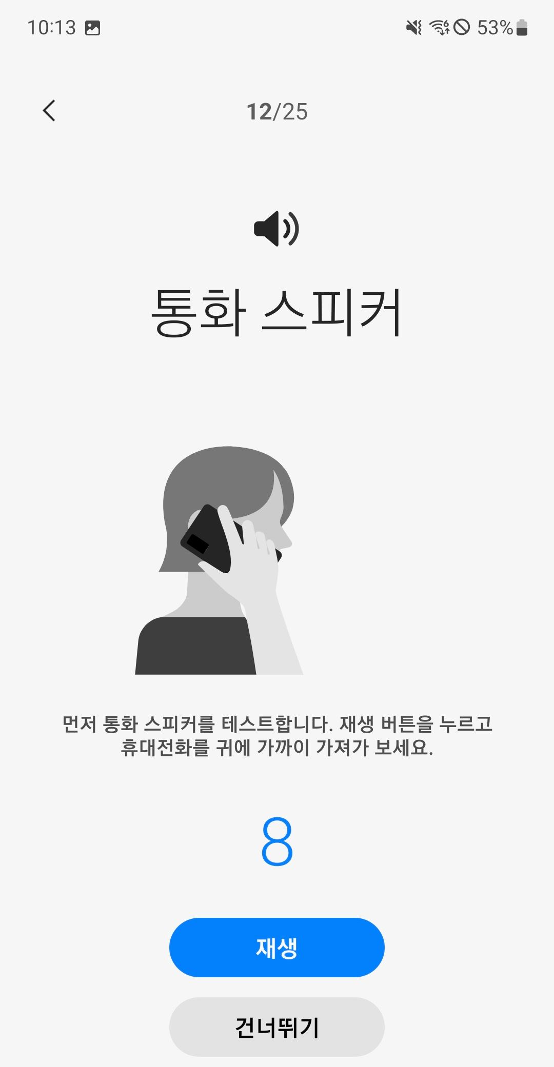 그리고 통화 스피커 진단은 "재생" 버튼을 클릭해 스피커에서 소리가 나는지 확인을 해주고 소리가 들리면 "예" 소리가 안 들리면 "아니요"를 클릭해주면 되고