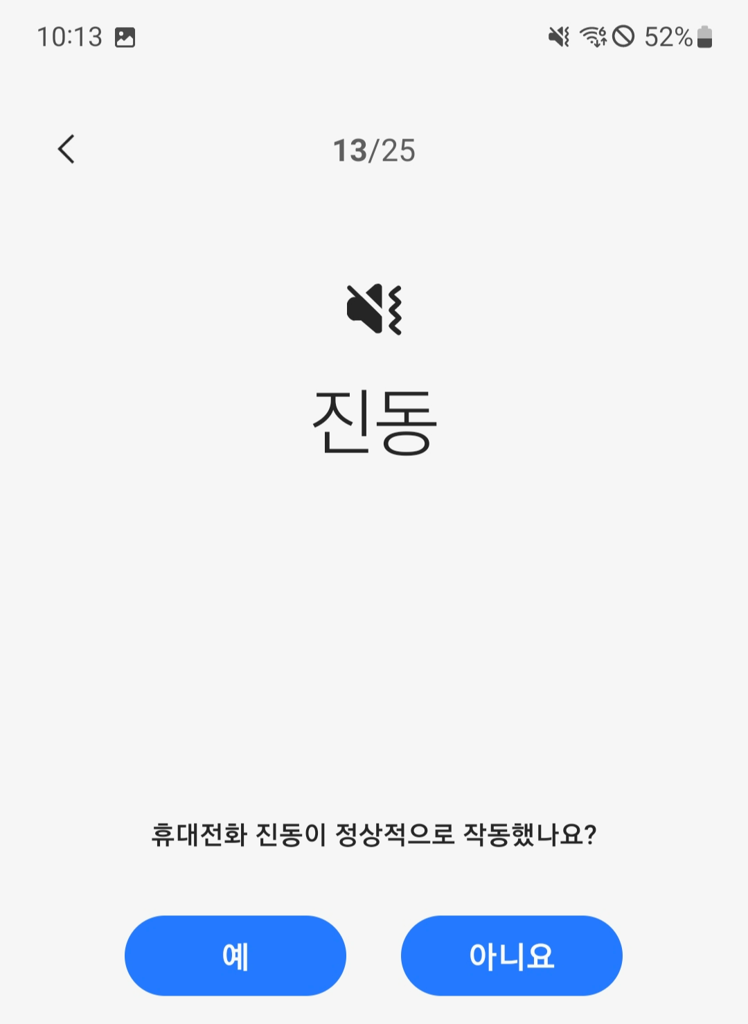 그리고 진동음도 잘되는지 안되는지 확인을 시켜주고 동일하게 잘되면 "예" 혹은 안되면 "아니요"를 클릭해주면 됩니다.