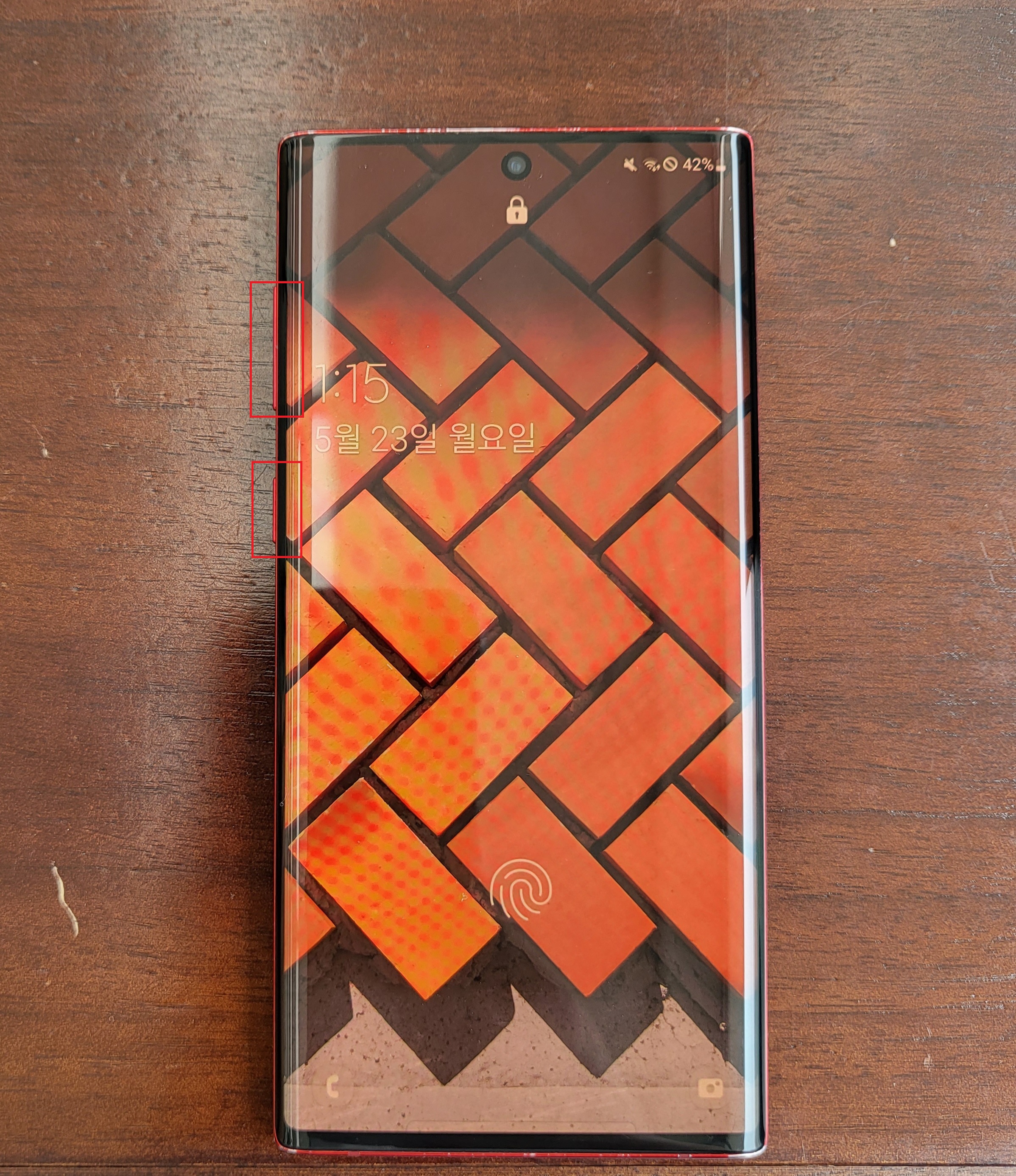 우선 갤럭시 스마트폰 볼륨 조절 버튼 중 소리 줄임 버튼(-버튼)과 현재는 빅스비 기능을 사용할 때 누르는 전원 버튼을 동시에 8초 동안 누르고 있어줍니다.