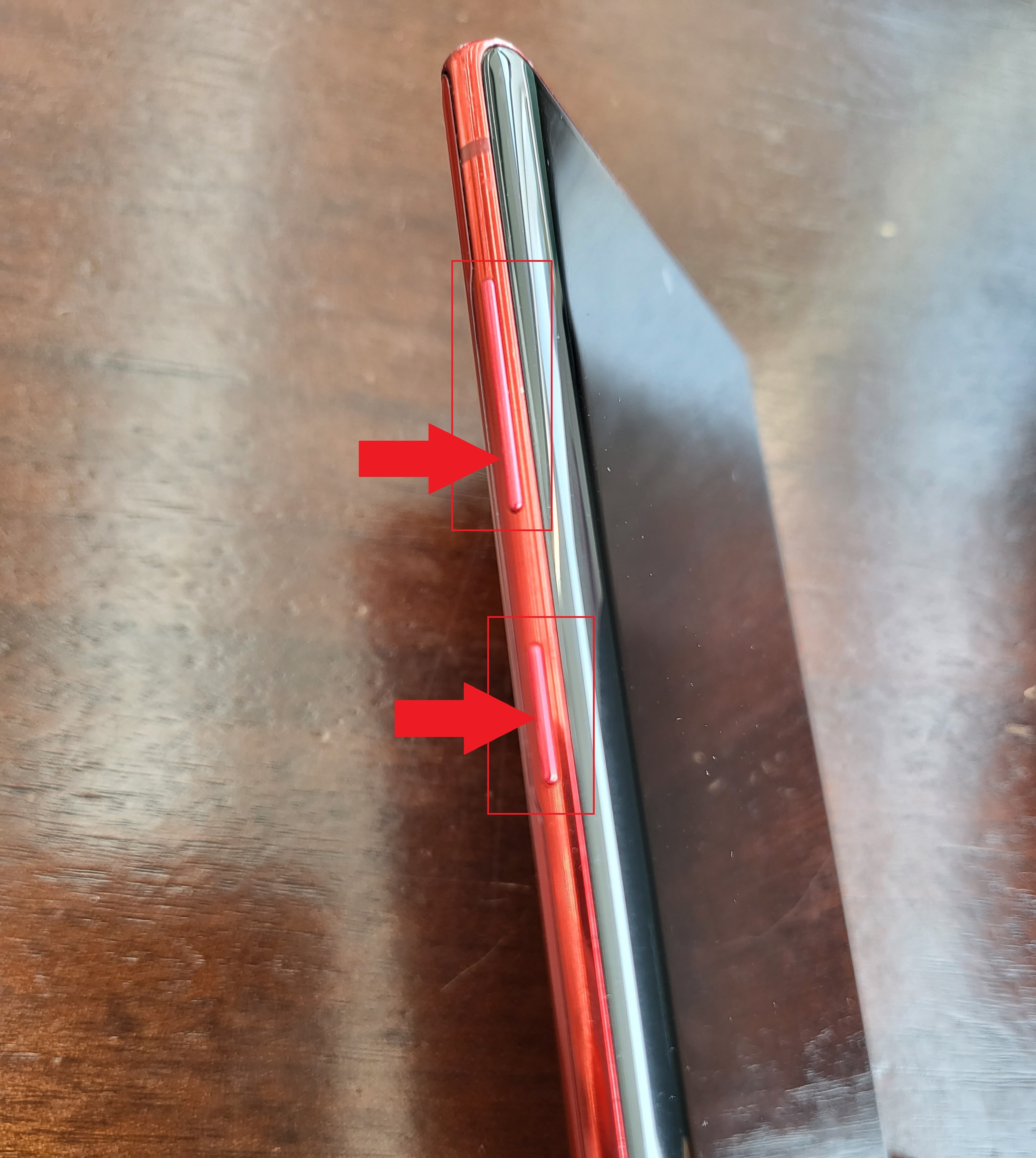 우선 갤럭시 스마트폰 볼륨 조절 버튼 중 소리 줄임 버튼(-버튼)과 현재는 빅스비 기능을 사용할 때 누르는 전원 버튼을 동시에 8초 동안 누르고 있어줍니다.