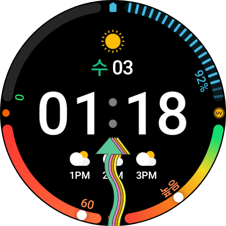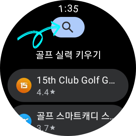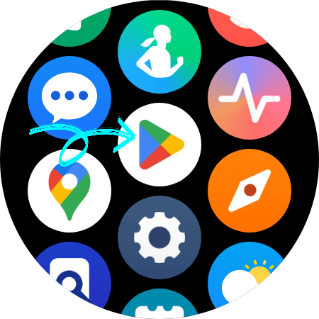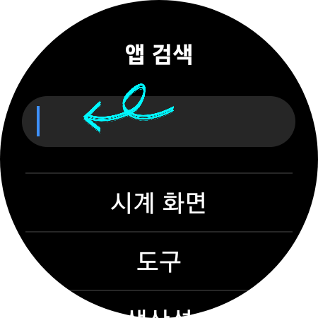 ▼갤럭시 워치로 카드결제를 하기 위해서 앱을 하나 다운로드해야 하는데요. 우선 갤럭시 워치 홈 화면에서 손가락으로 아래에서 위로 올려 [모든 앱]을 실행하고 [Play 스토어]를 클릭해 줍니다.
