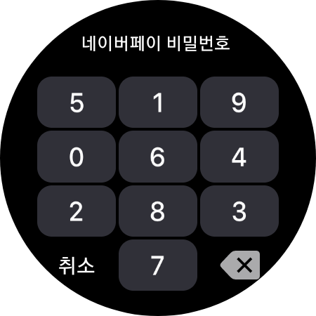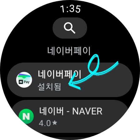 ▼갤럭시 워치에 다운로드한 [네이버페이앱을 실행] 해줍니다. 그다음 간단한 설정을 해주면 되는데요.