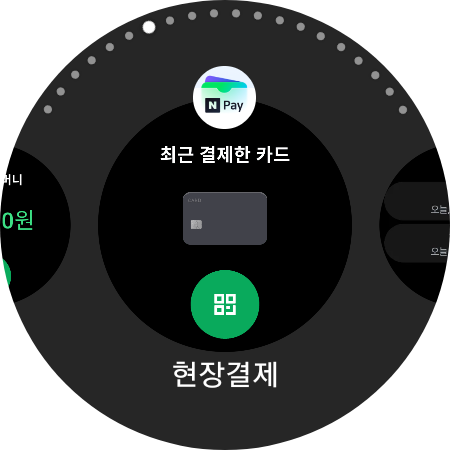 ▼그럼 스마트폰 네이버페이앱을 통해 등록한 신용카드를 갤럭시 워치에서 확인할 수 있습니다. 그럼 갤럭시 워치에서 결제하고자 하는 [신용카드를 선택] 해줍니다.