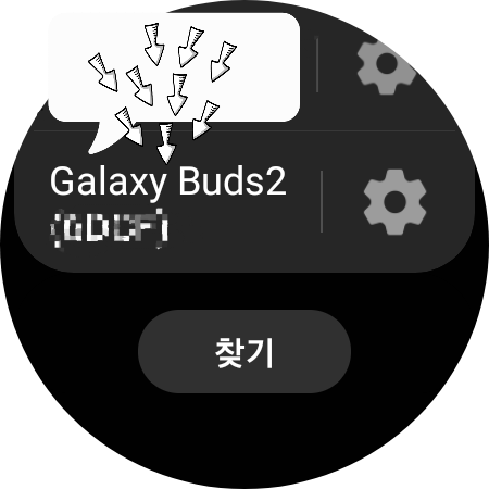 ▼만약 핸드폰에 연결하지 않은 갤럭시 버즈(무선 이어폰)가 있다면 갤럭시 버즈(무선 이어폰)를 페어링모드로 만든 뒤 갤럭시 워치에서 [찾기]를 클릭하고 페어링모드로 되어있는 해당 갤럭시 버즈(무선 이어폰)를 클릭해 주면 됩니다.