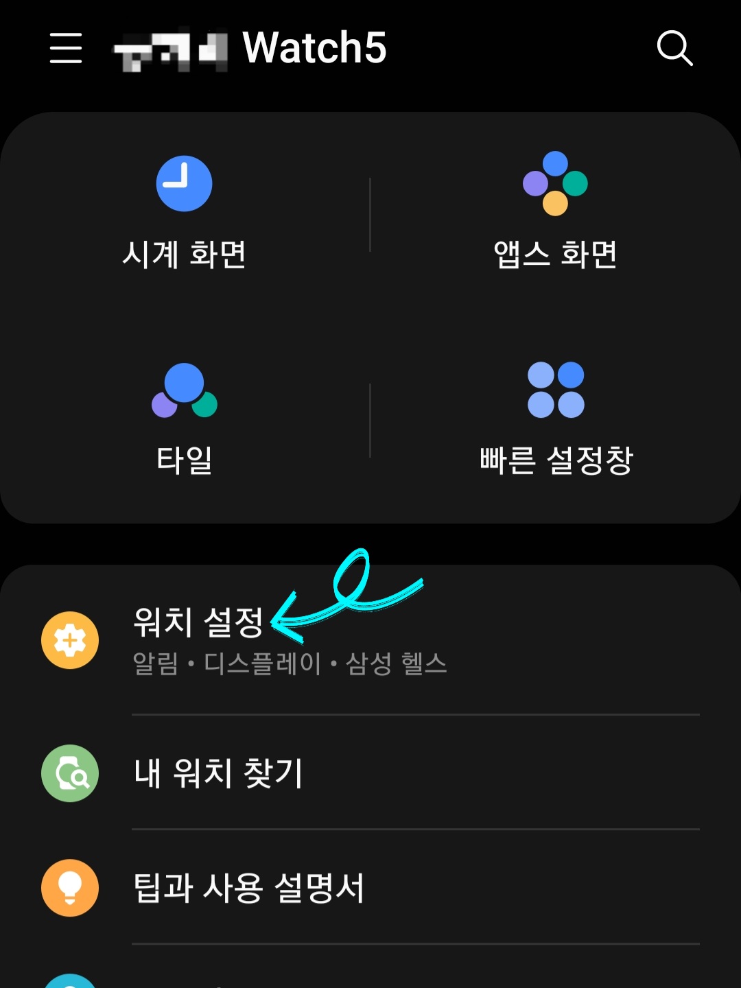 ▼만약 갤럭시 워치로 저장되어 있던 음악을 삭제했지만 며칠 뒤 다시 삼성 뮤직 앱에 들어가 보니 삭제했던 음악이 다시 저장되어있다면 갤럭시 워치랑 연동되어있는 핸드폰을 통해 깔끔하게 삭제할 수 있습니다. 우선 워치랑 연동된 핸드폰으로 [Galaxy Wearable(갤럭시 웨어러블)] 앱을 실행한 다음 [워치 설정]을 클릭해주세요.