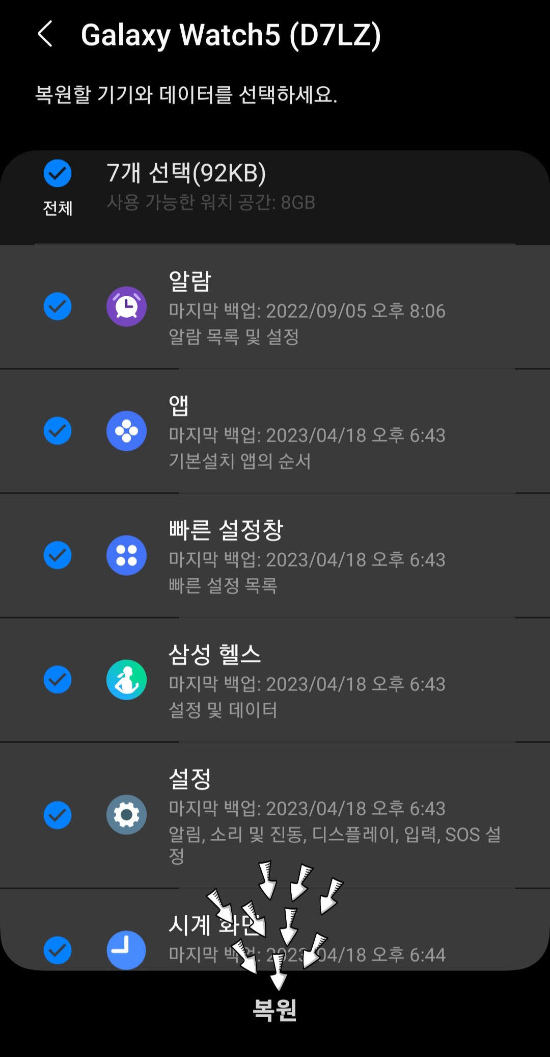 갤럭시 워치 복원
