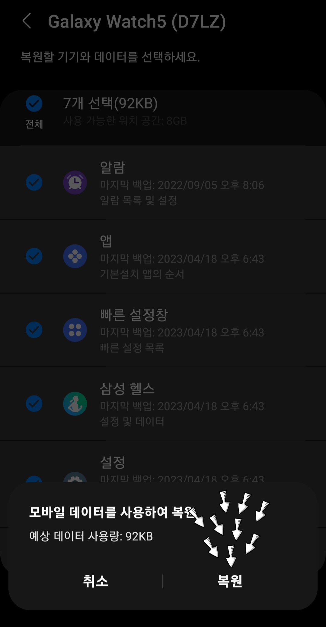 갤럭시 워치 데이터 백업