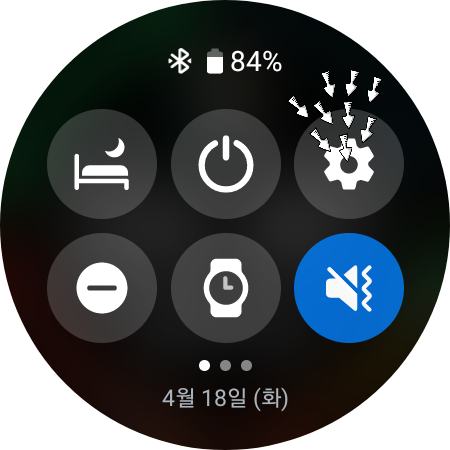 ▼갤럭시 워치 초기화하는 방법은 생각보다 간단합니다. 갤럭시 워치 화면을 손가락으로 위에서 아래로 내려 [톱니바퀴 모양(설정)]을 클릭해 줍니다.*만약 기존 갤럭시 워치 설정한 그대로 새 핸드폰에 연결하고 싶다면 데이터 백업을 미리 해줘야 합니다. 백업하는 방법은 계속 읽다 보면 나오니 초기화하기 전 꼭 한번 쭉 읽고 진행하세요.