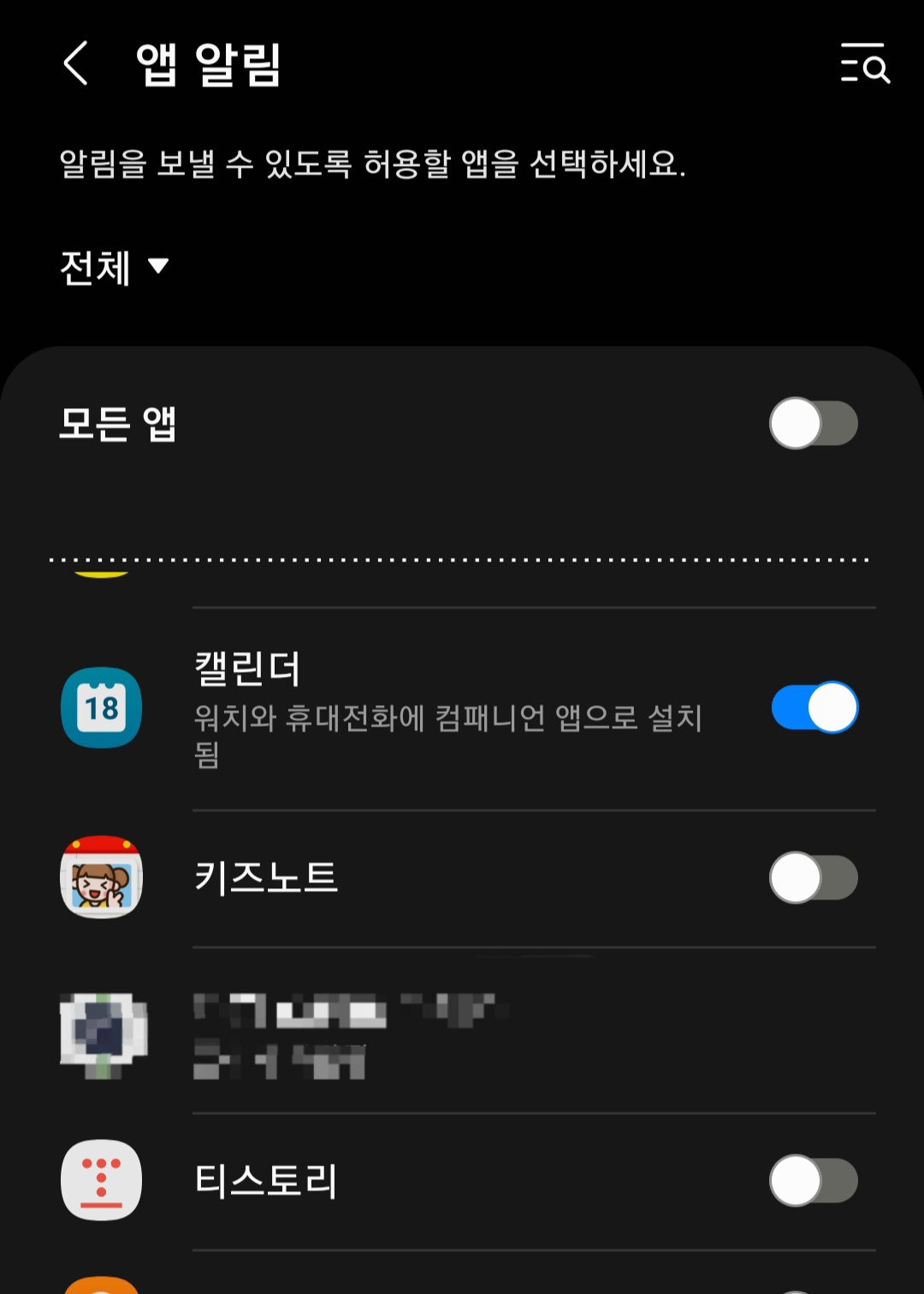 ▼그럼 핸드폰에 다운로드해 놓은 앱들 중 갤럭시 워치로 알림 받고 싶은 앱들만 활성화시켜 주면 핸드폰으로 온 알림들도 갤럭시 워치로 확인할 수도 있습니다.