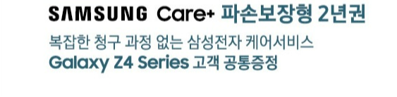 갤럭시 제트 플립4 사전예약 혜택으로 삼성 케어+ 파손 보장형 2년권이 증정된다고 합니다. 사전 예약 시 증정되는 삼성 케어+ 파손 보장형 2년권은 이동통신사 개통이 완료되면 7일 안에 자동으로 등록되고 삼성 케어+ 가입 알림 톡을 수신 후 D+1일부터 반영됩니다.
