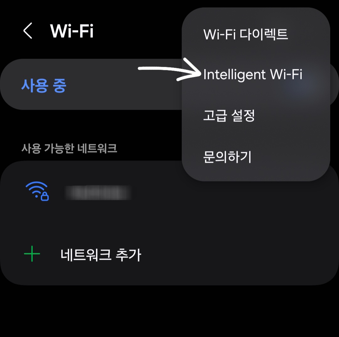 ▼그다음 하단에 있는 [상세설정]을 클릭 후 상단에 있는 [더 보기(•••)] 점 3개를 클릭하고 [Intelligent Wi-Fi]를 클릭해 줍니다.