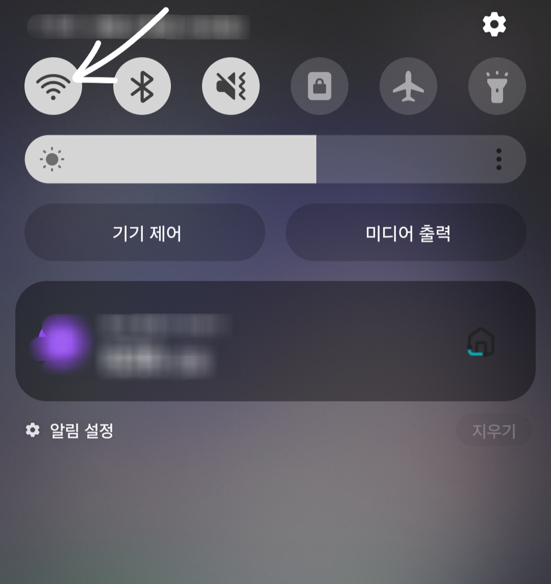 ▼우선 [빠른 설정창]을 활성화시킨 다음 [와이파이] 모양을 손가락으로 약 3초간 눌러줍니다.