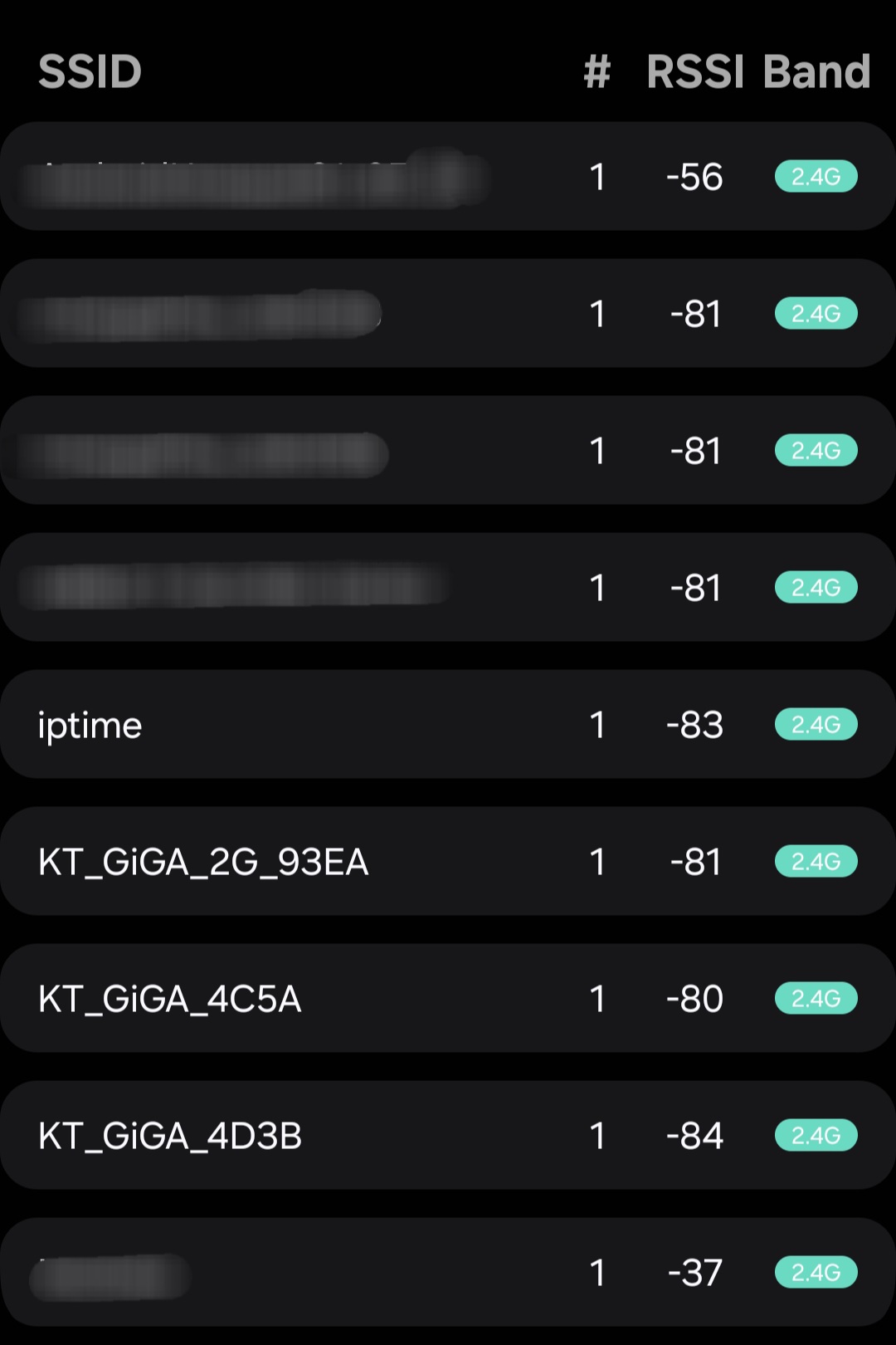 ▼그럼 핸드폰으로 근처에 있는 와이파이 정보가 쭉 뜨는데요. 어떤 게 신호가 좋은지 확인 후 빠른 설정창에서 와이파이를 잡아주기만 하면 됩니다.