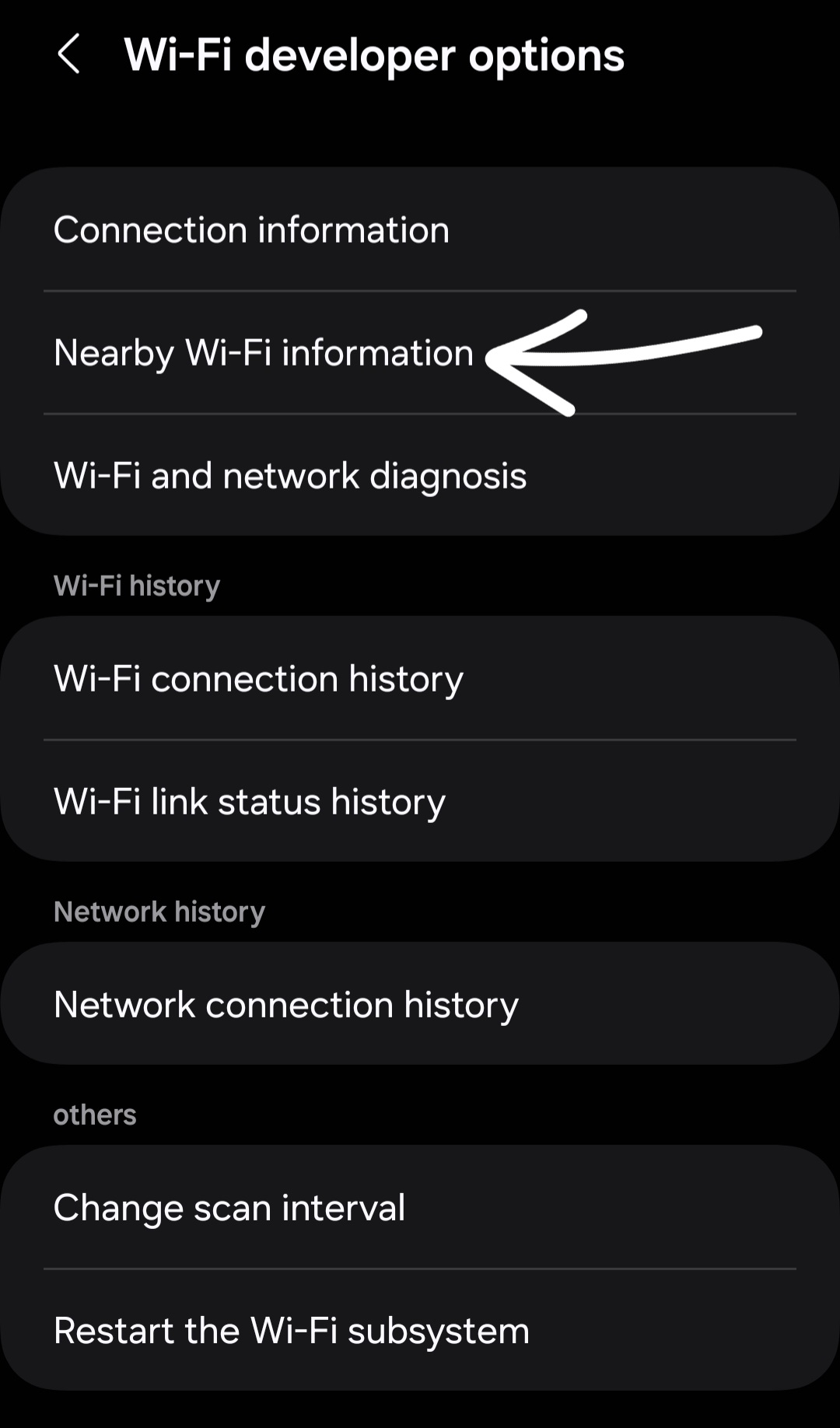 ▼그다음[Customize Wi-Fi list settings]을 클릭하고 [Nearby Wi-Fi information]을 클릭해 주면 되는데요.