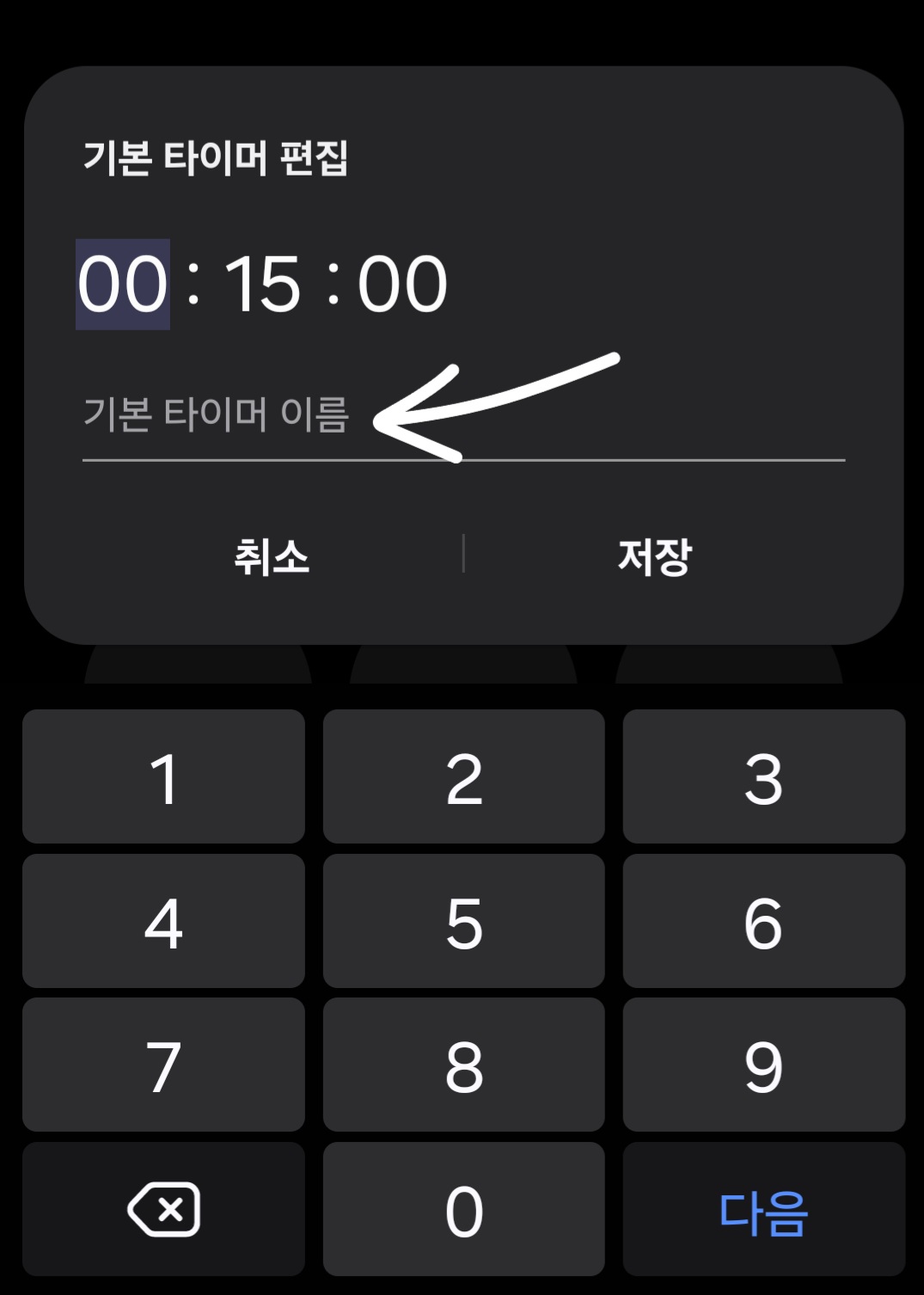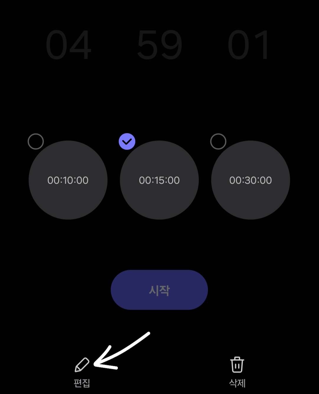 ▼다음으로 등록해 놓았던 타이머 편집도 가능한데요. 동일하게 [더 보기(•••)]클릭 후 [기본 타이머 편집]을 누르면 등록해 놓았던 타이머를 [삭제]할 수도 [편집]할 수도 있습니다. 그럼 타이머 시간을 편집할 수 있을 뿐 아니라 기본 타이머 이름까지 편집 가능합니다.