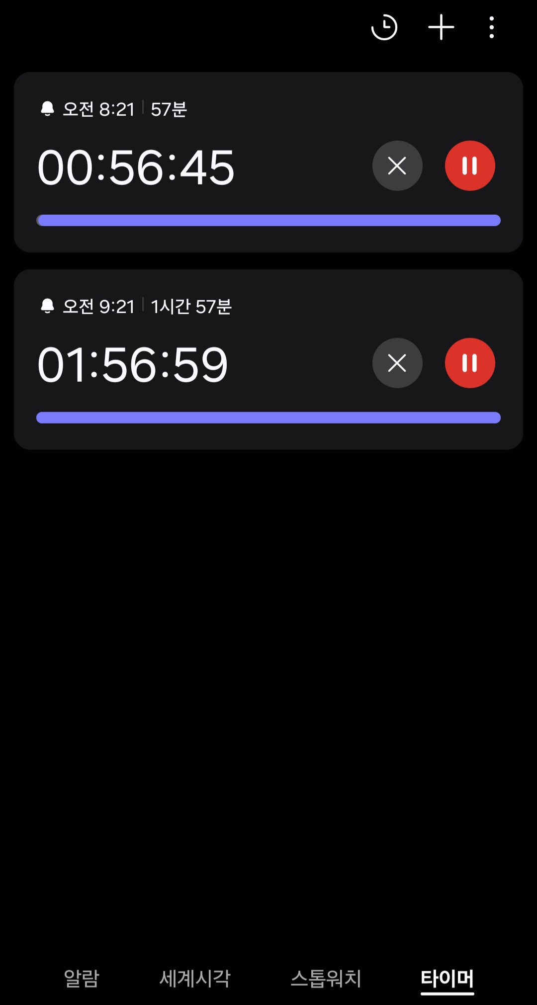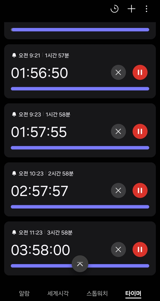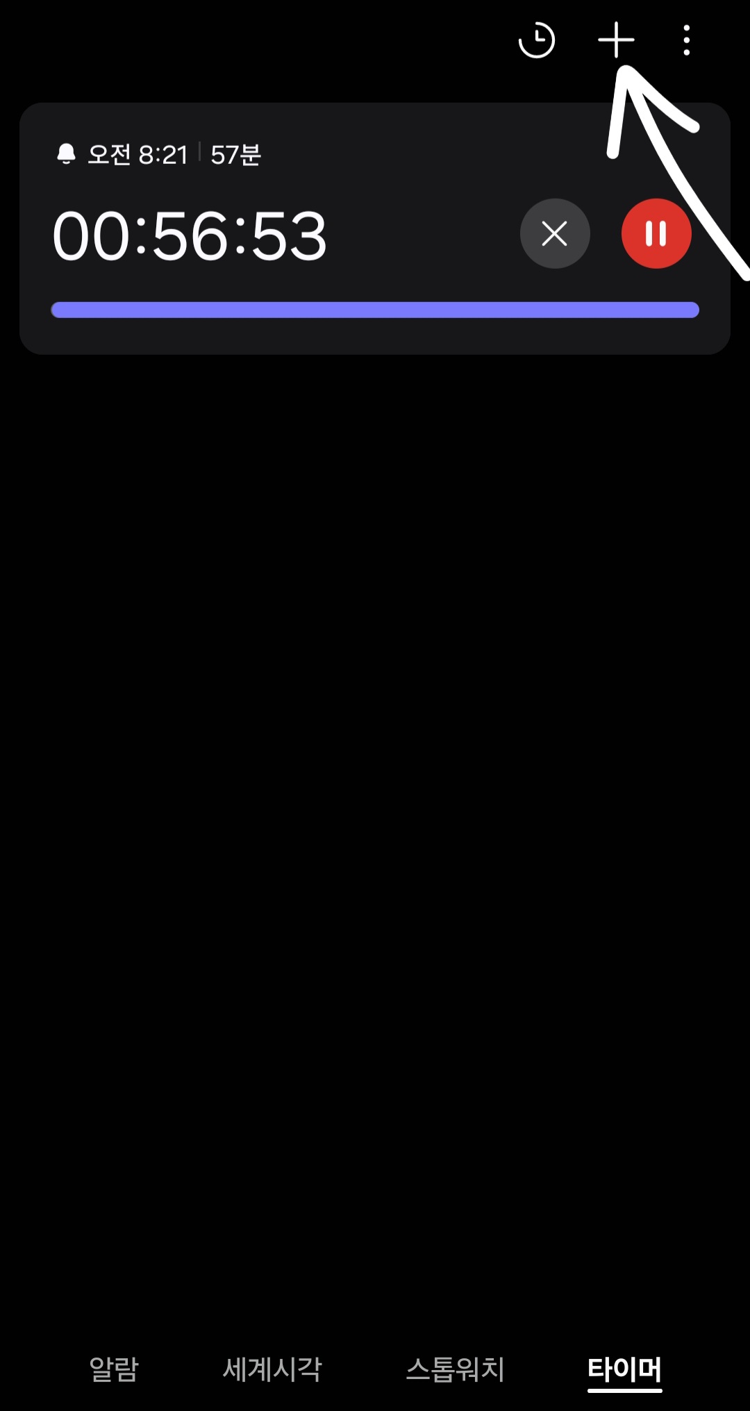 ▼그다음 상단에 있는 [더 보기(≡)]를 클릭 후 [+]버튼을 클릭하면 또 다른 타이머를 생성할 수 있는데요.