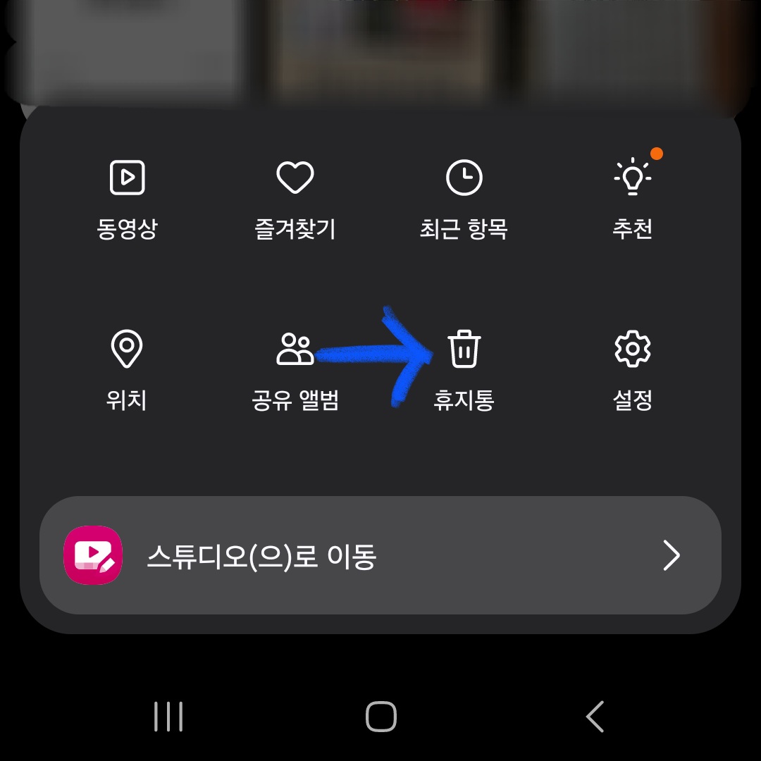 ▼아까랑 동일하게 [갤러리] - [≡(더 보기)] - [휴지통]을 클릭해 주세요.