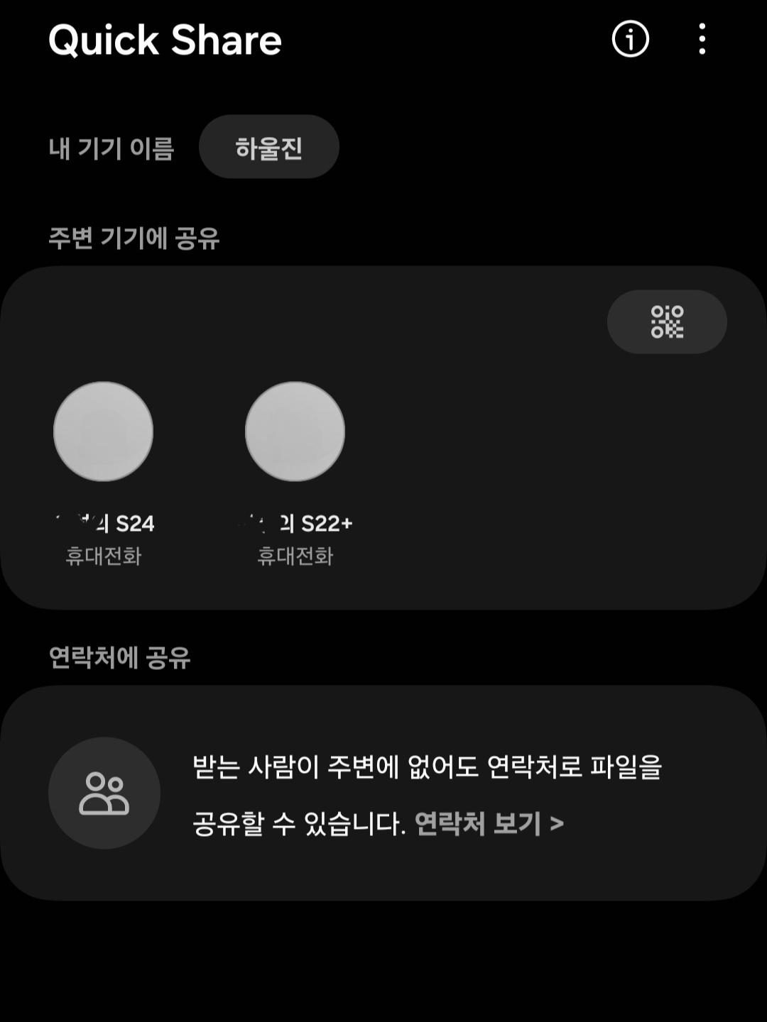 ▼그럼 블루투스를 이용할 때나 Wi-Fi 다이렉트 혹은 상대방이 퀵셰어 기능을 활용해 나한테 무엇가를 보내줄때 밑에 있는 이미지처럼 "~의 ***"이 아닌 바꾼 변경한 기기 이름으로 표시되어 나옵니다.