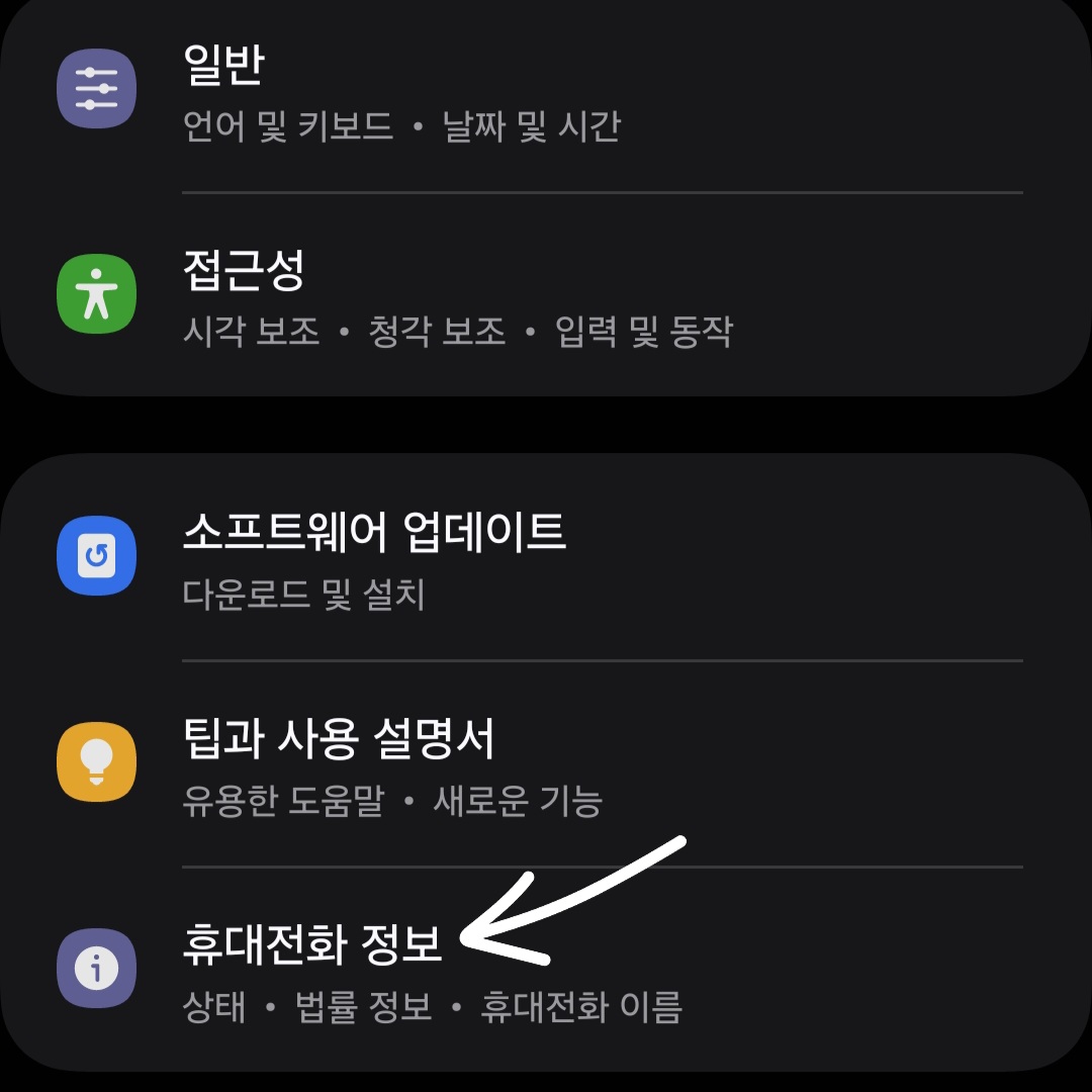 ▼우선 핸드폰 [설정]에 들어가 줍니다. 그다음 스크롤을 맨 아래로 내리면 [휴대전화 정보]가 보일 겁니다. 그걸 클릭해 주세요.