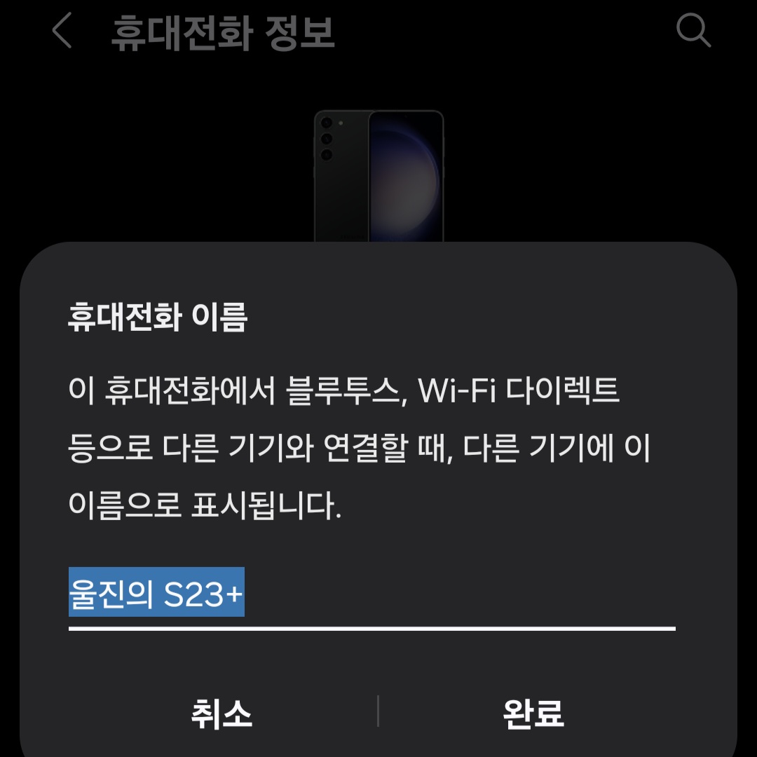 핸드폰을 구매하고 간단한 설정을 하면 핸드폰 기기 이름이 보통 본인 이름 플러스 핸드폰 기종이 뜨잖아요. 예시로 "울진의 S23+"이런 식으로 말이죠. 만약 이런 식의 핸드폰 기기 이름을 바꾸고 싶으신 분들을 위해 포스팅을 준비해 보았습니다.