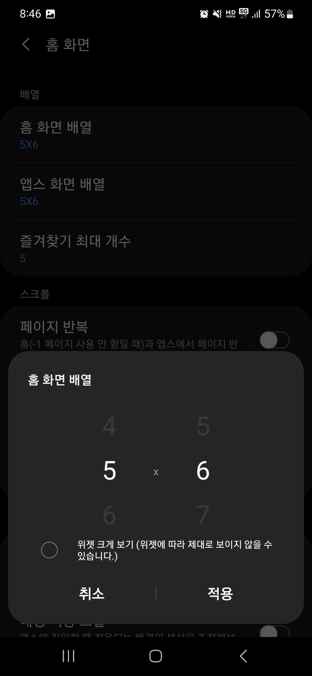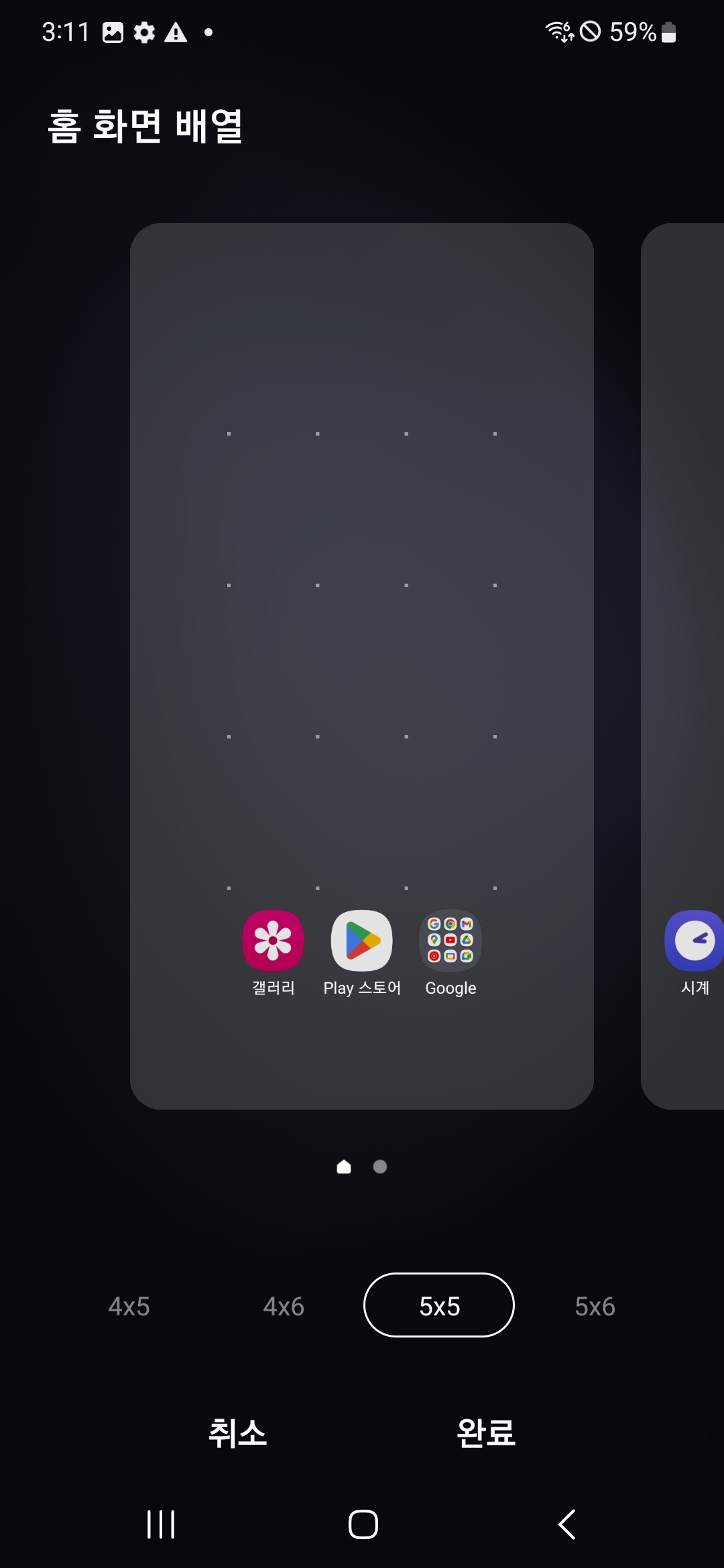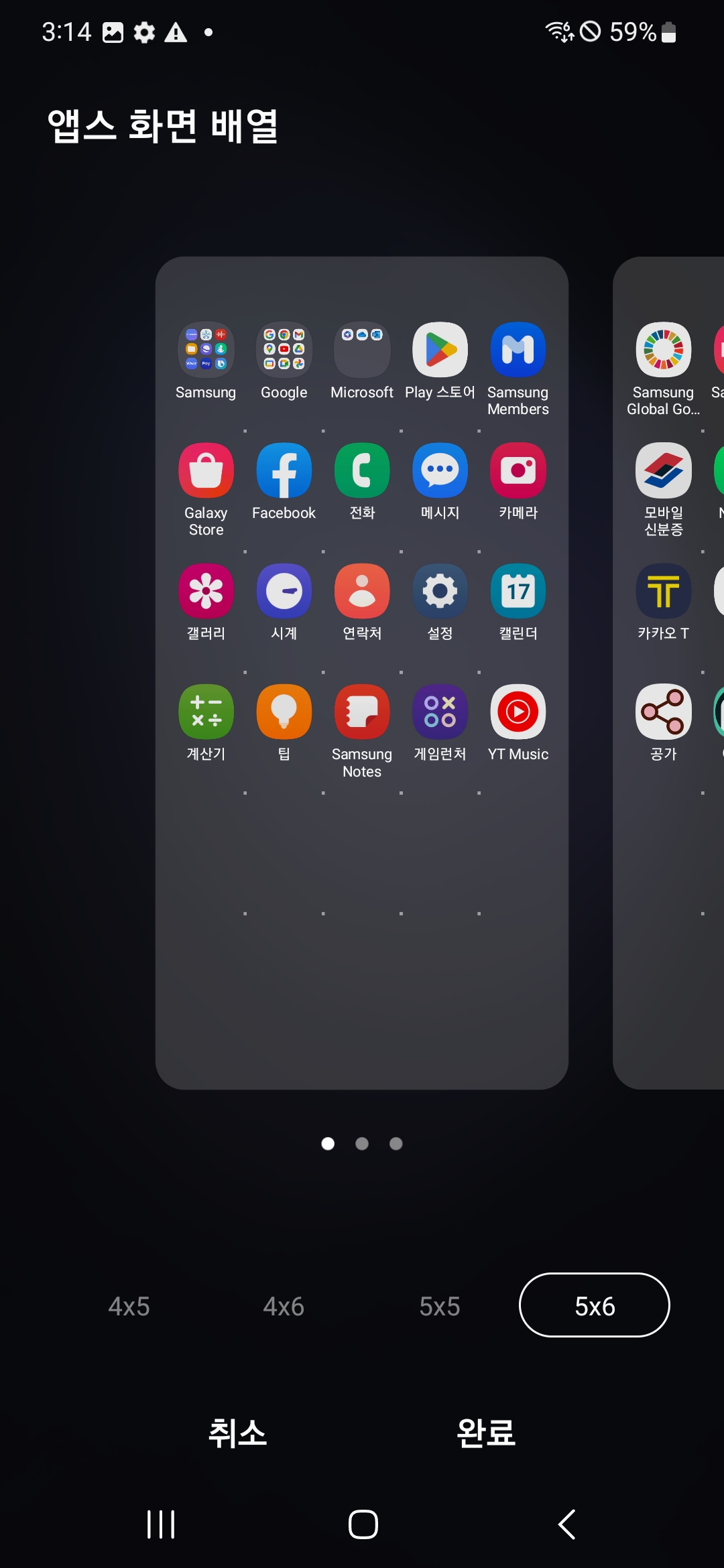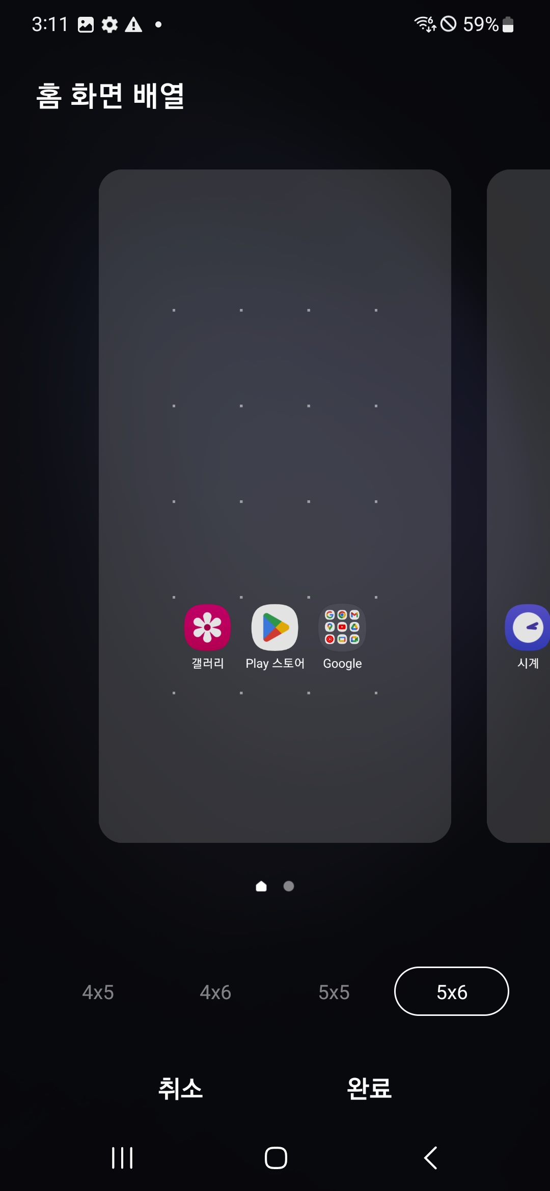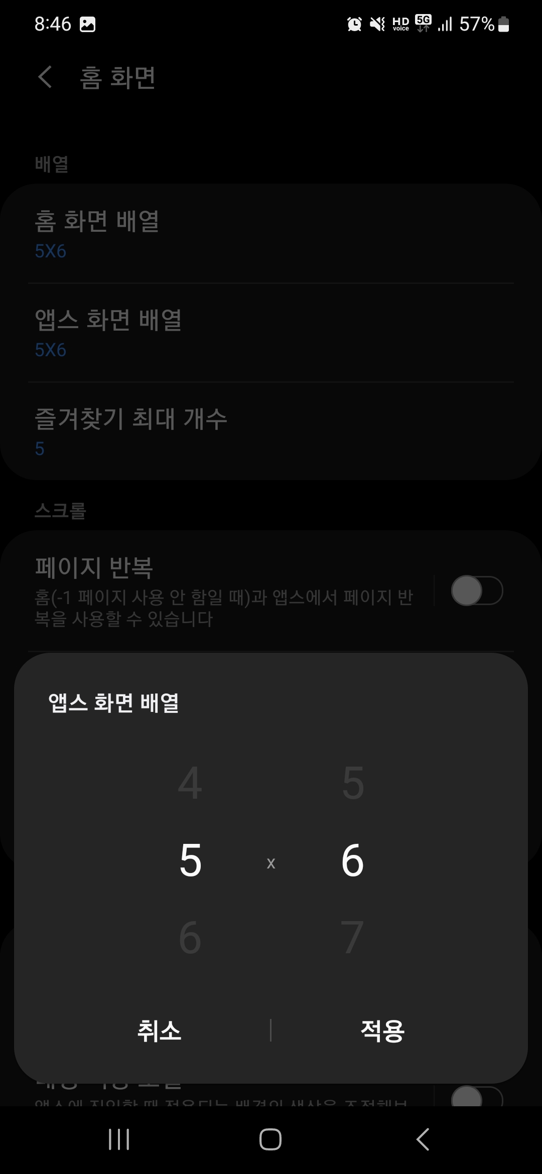 ▼혹은 5x5, 5x6으로 설정해 바탕화면에 있는 어플 아이콘 크기를 조절해 핸드폰을 꾸밀수도 있는데요. 어떠신가요? 핸드폰 어플 크기가 달라지는게 느껴지시나요?