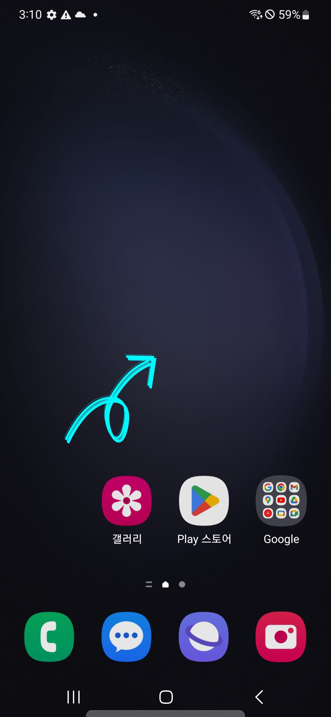 ▼갤럭시 핸드폰 홈 화면에서 어플 없는 공간을 약 3초간 꾹 눌러줍니다.