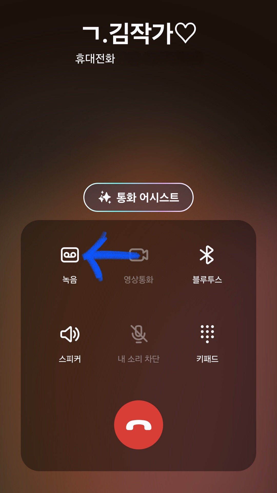 ▼이러한 방식으로 통화 중 녹음버튼을 누르면 상대방이랑 전화통화했던 내용이 녹음됩니다.