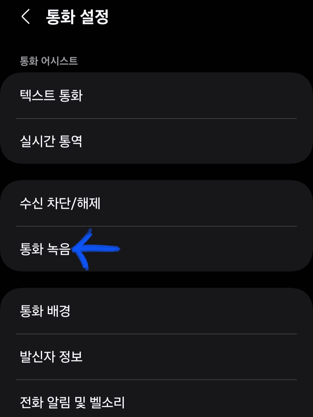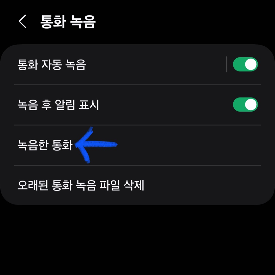 ▼만약 통화 녹음한 내용을 찾고 싶다면 [갤럭시 통화앱] - [상단•••(더 보기)] - [통화녹음] - [녹음한 통화]를 클릭하면 통화 녹음한 파일들을 확인할 수 있습니다.