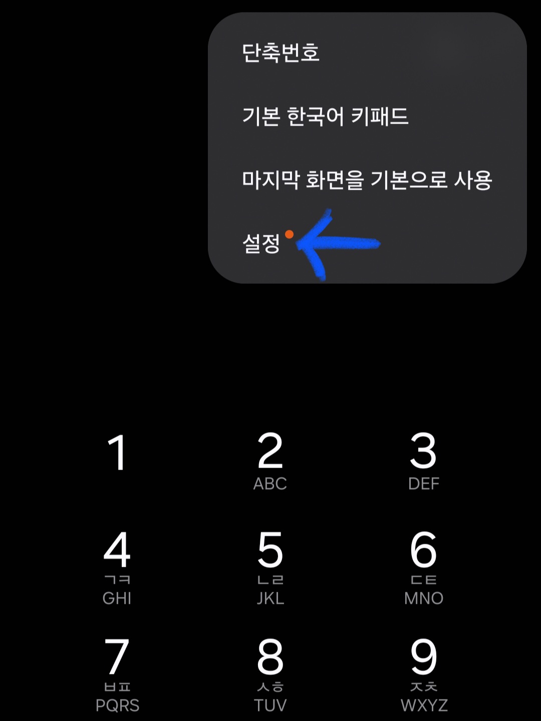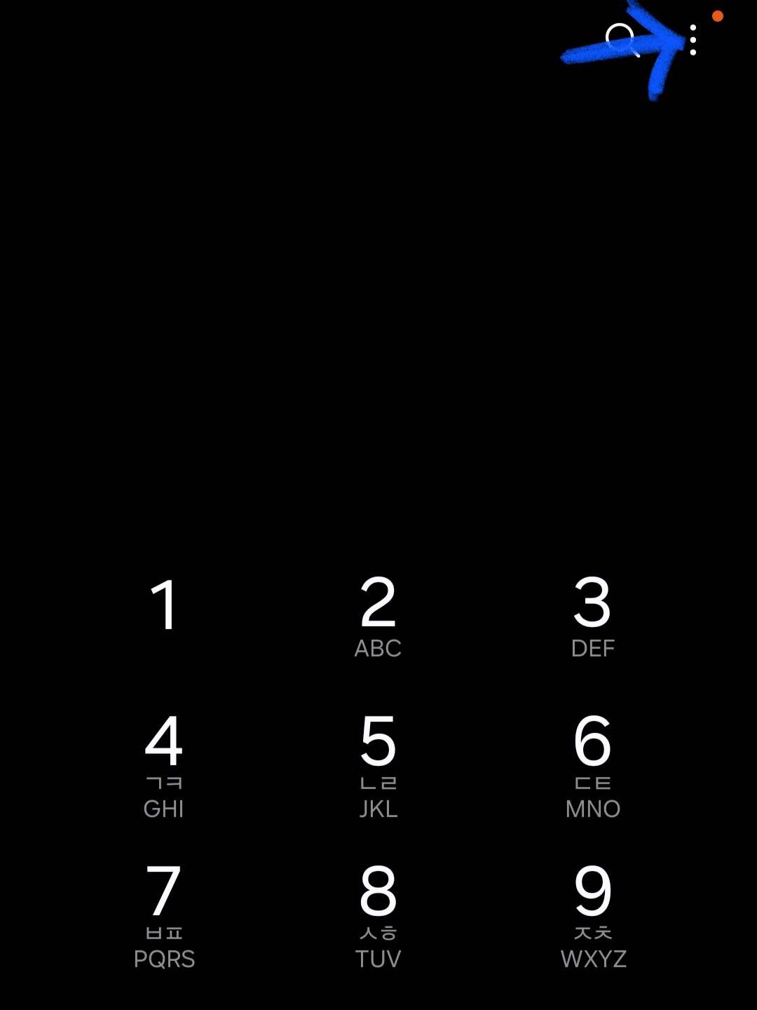 ▼수동에 이어 이번엔 자동으로 통화녹음 되는 기능에 대해 알아보겠습니다. 우선 전화 버튼을 눌러준 다음 상단에 [•••(더 보기)]를 클릭해 [설정]에 들어가 줍니다.