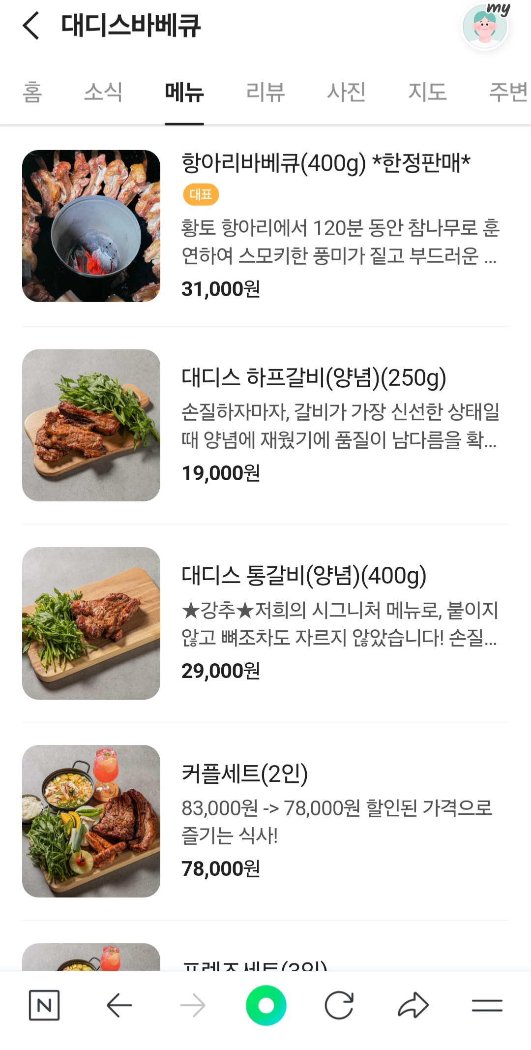 저는 최근에 여행 가서 맛있게 먹고 왔던 대디스바베큐 메뉴판을 스크롤 캡처해 봤는데요. 어떤가요? 편리하지 않나요? 이와 같이 다양한 방식으로 사용할 수 있는 캡처기능이니 활용해 보시길 바랍니다.