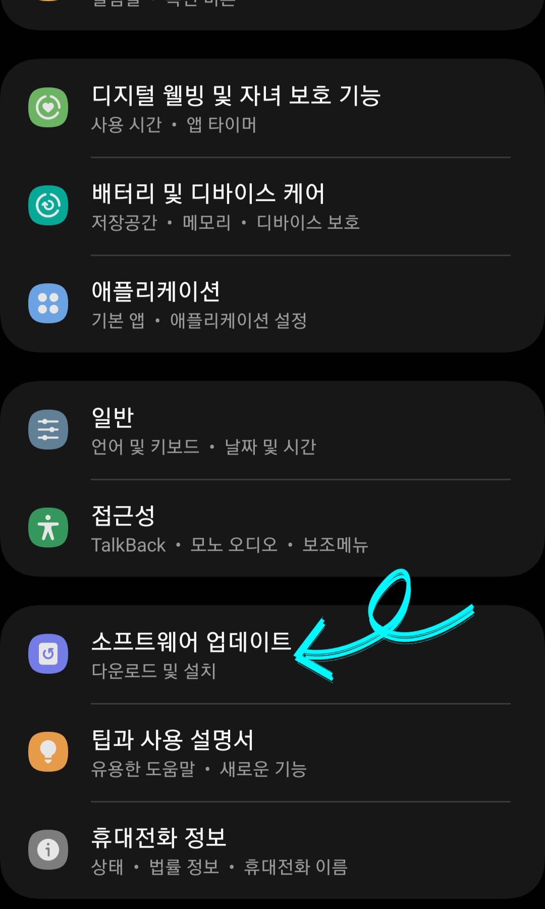 ▼그다음 스크롤을 쭉 내려 [소프트웨어 업데이트]를 클릭해 주면 최근에 핸드폰을 언제 업데이트를 했는지 확인할 수도 있는데요.