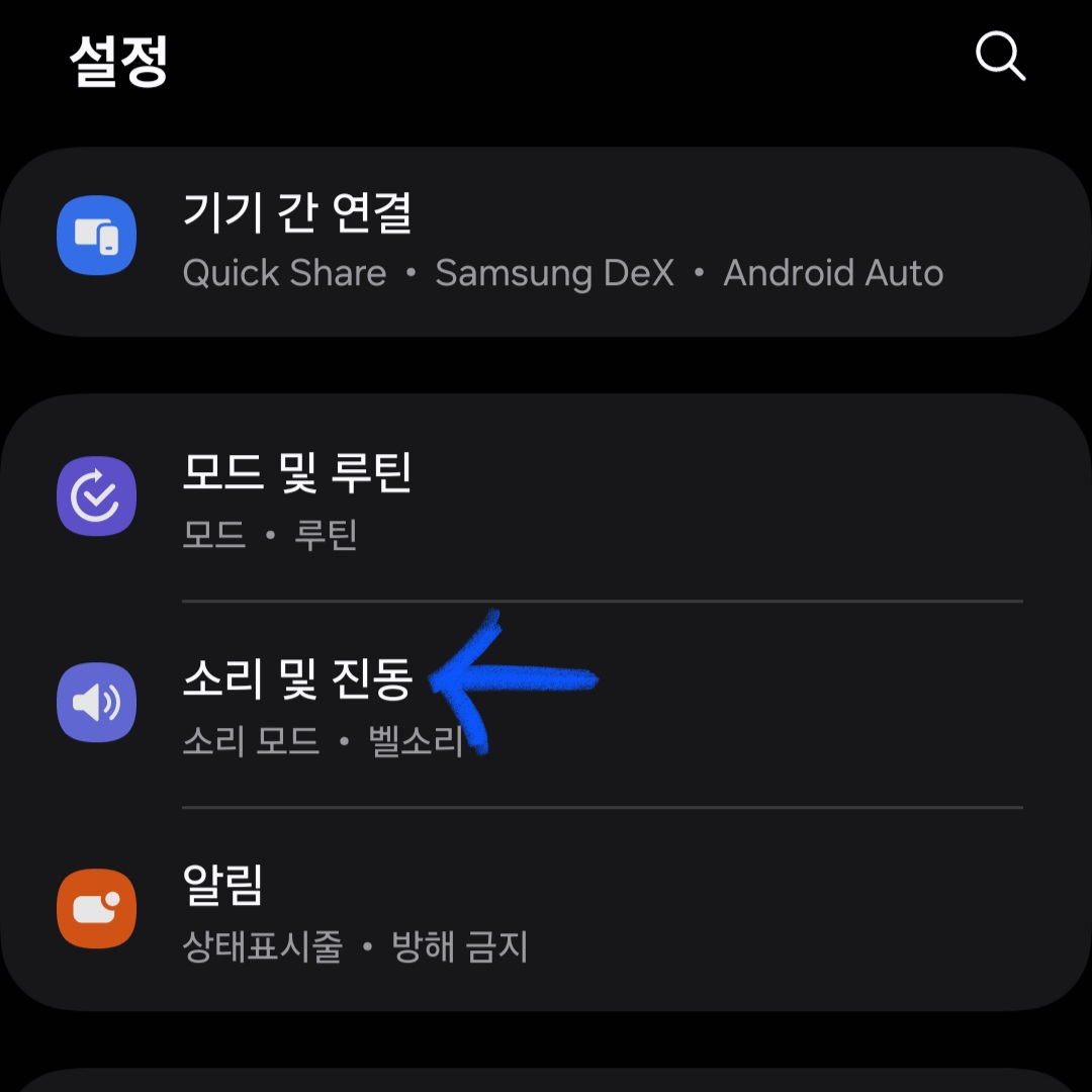 ▼우선 핸드폰[설정]으로 들어가 준 다음 [소리 및 진동]을 클릭해주세요.