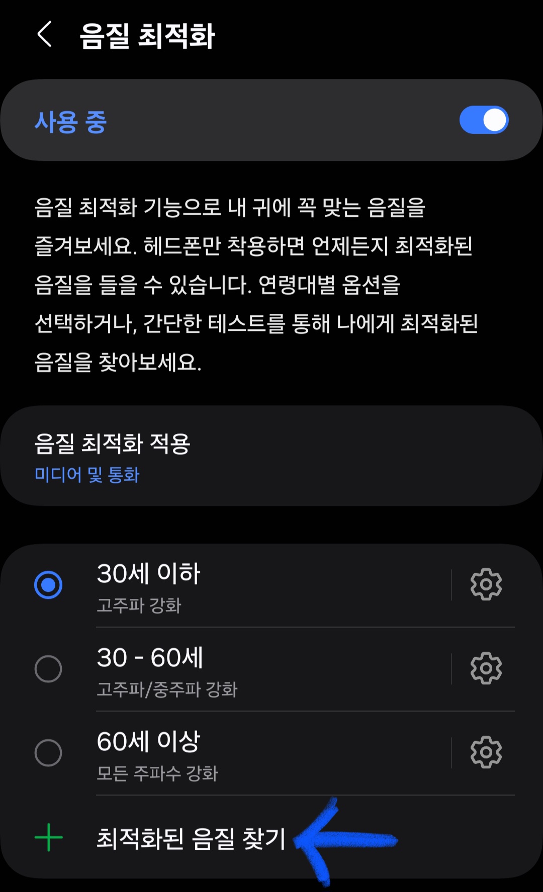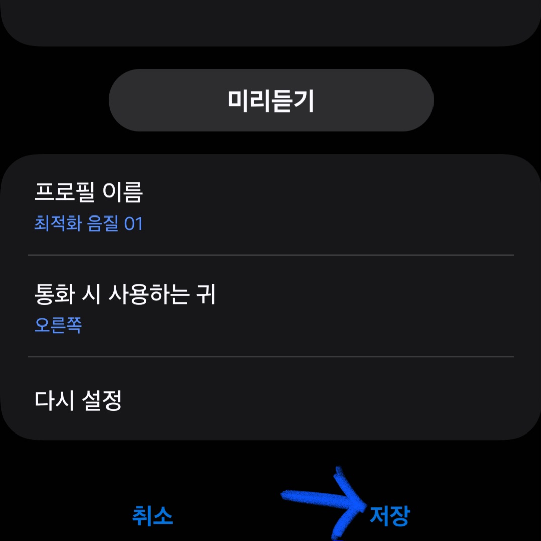 위에 있는 설정을 완료하면 노래를 듣거나 영상을 보거나 통화를 할 때 핸드폰 소리 관련된 모든 소리가 본인한테 알맞은 음질로 바뀌어 들린다고 하니 한번 음질 최적화 설정 후 사용해보시길 바랍니다. 감사합니다.