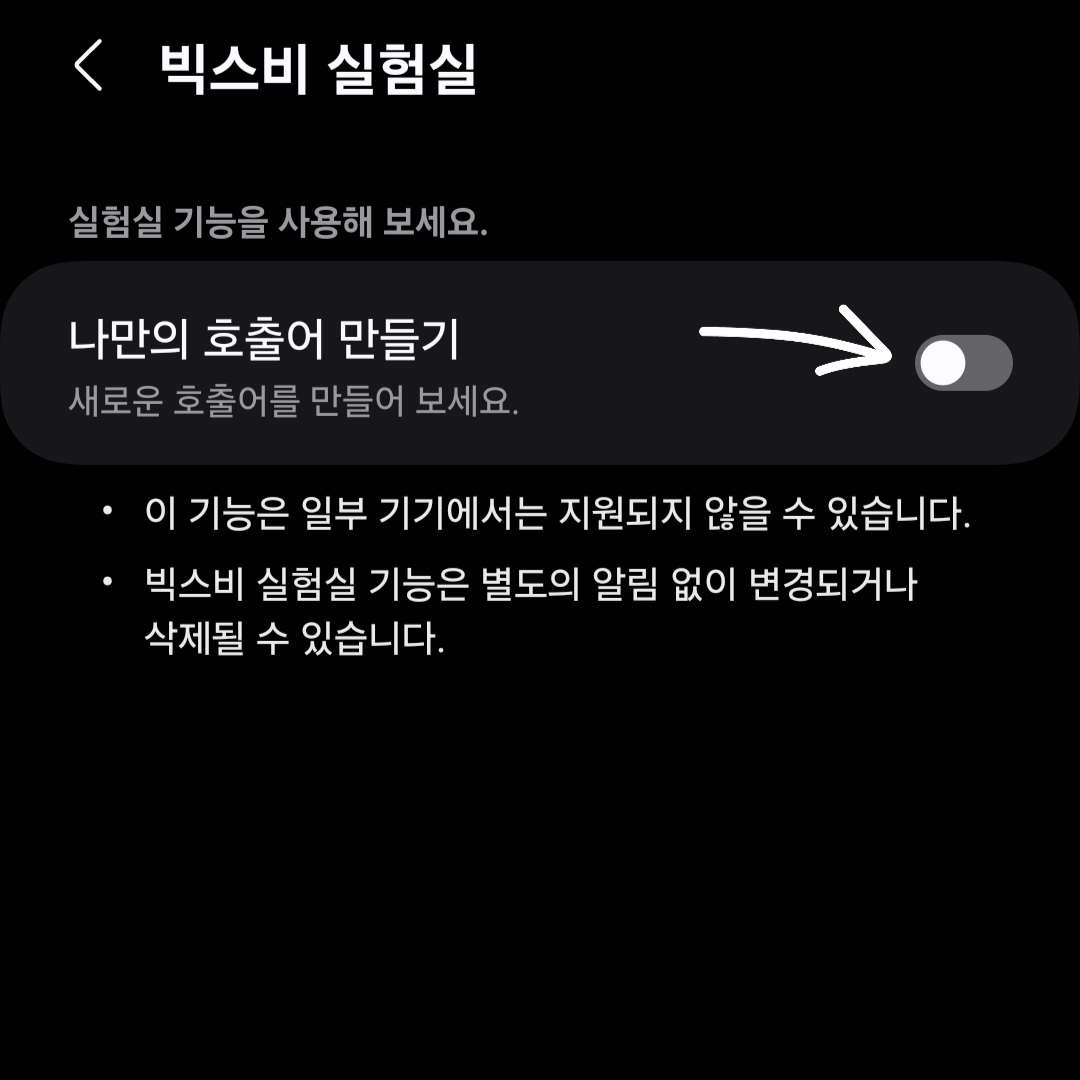 ▼그럼 빅스비를 새로운 호출어로 만들 수 있는데요. 호출어는 3-5 글자 사이의 어구를 사용해야 하며, 받침이 있는 호출어일수록 인식을 잘한다고 합니다. 그렇게 시작버튼을 눌러 빅스비 명령어를 바꿔보았는데요.