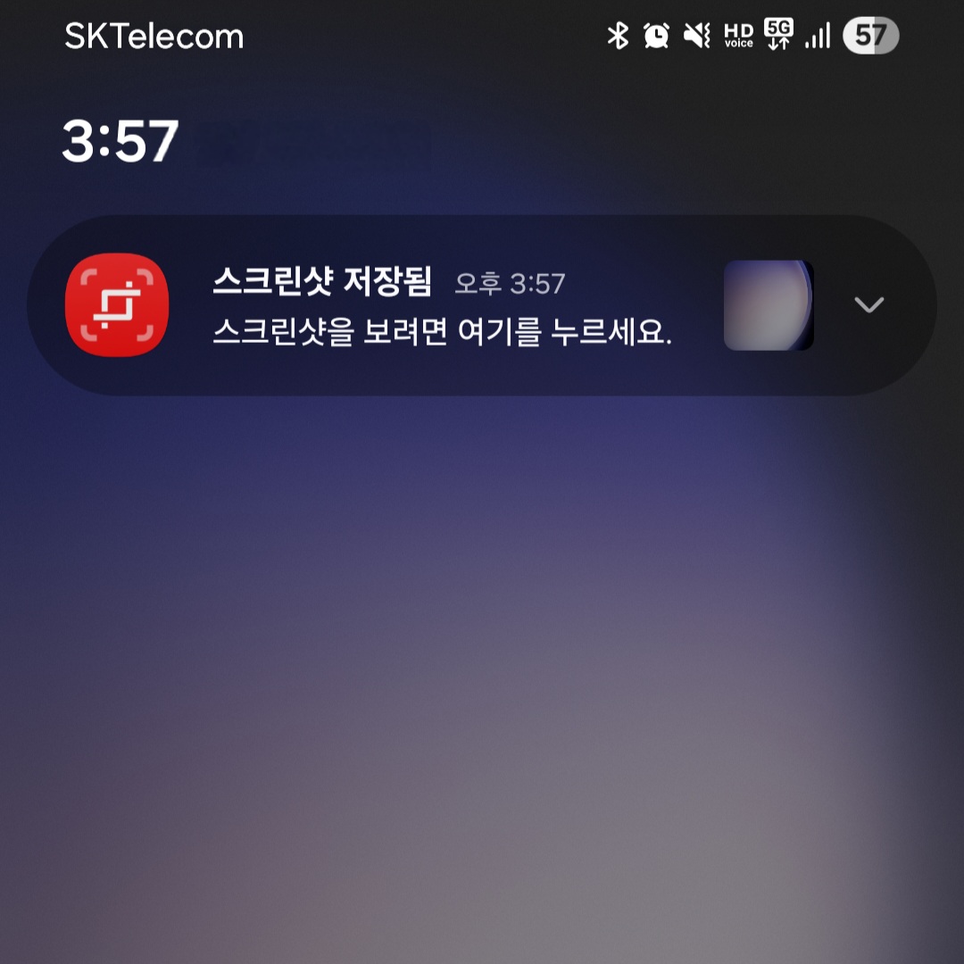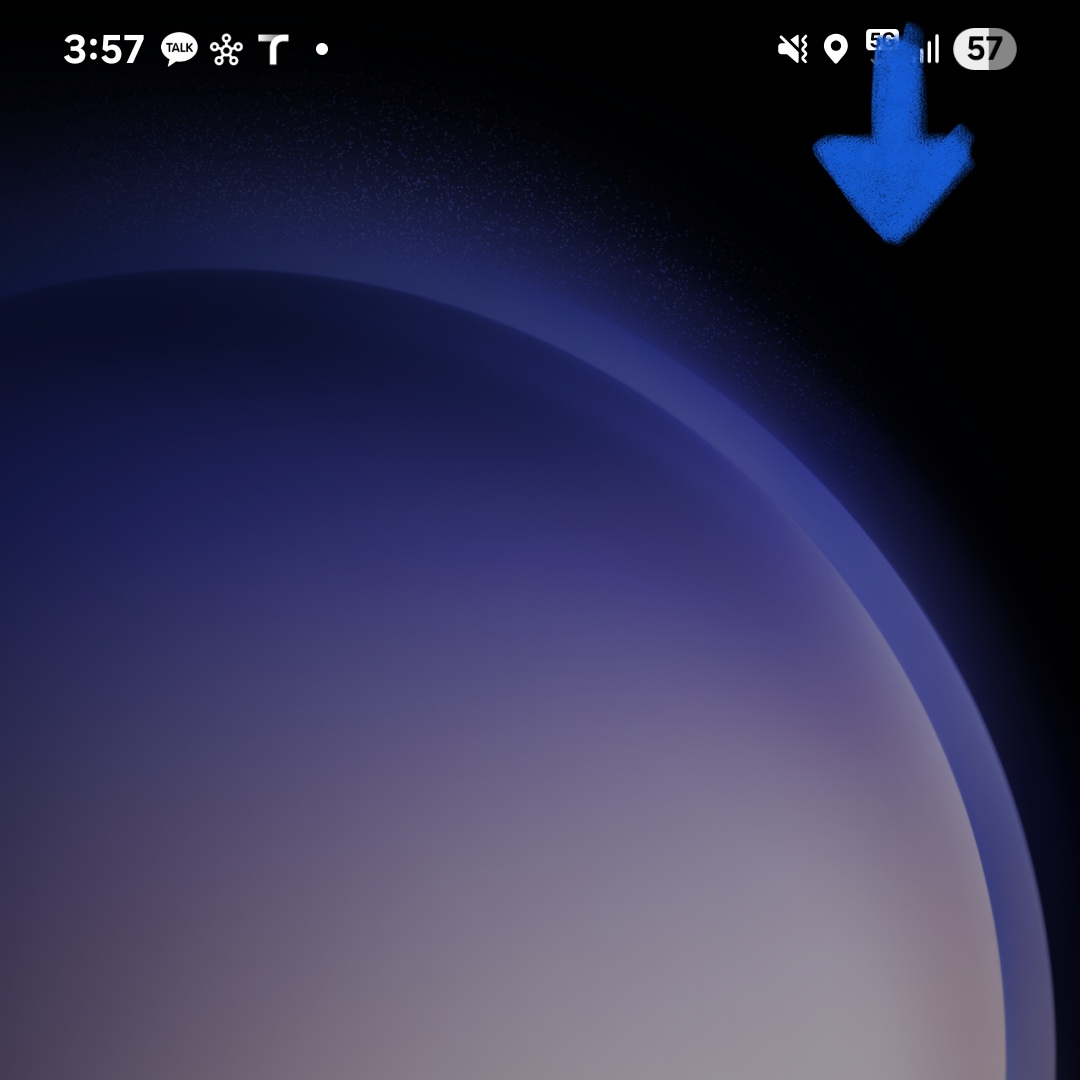 ▼모든 설정이 끝나면 예전처럼 핸드폰 상단을 위에서 아래로 내려주기만 하면 알림창, 설정창을 한꺼번에 확인할 수 있습니다.