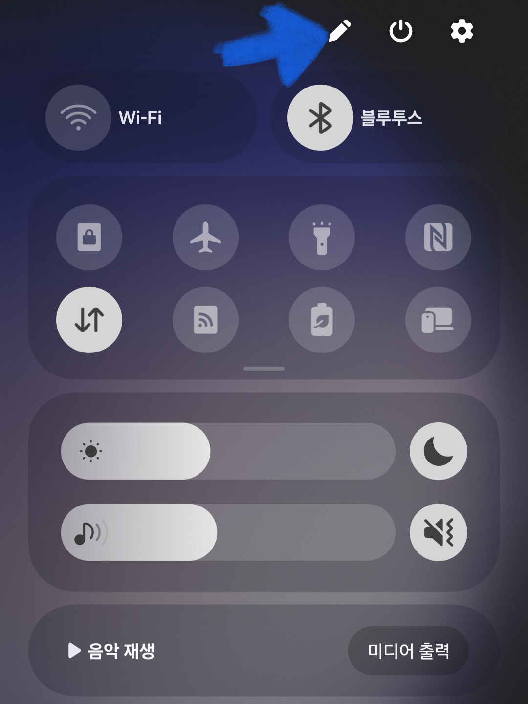 ▼우선 설정창을 활성화한 다음 전원 옆에 있는 [연필모양]을 클릭해 줍니다.