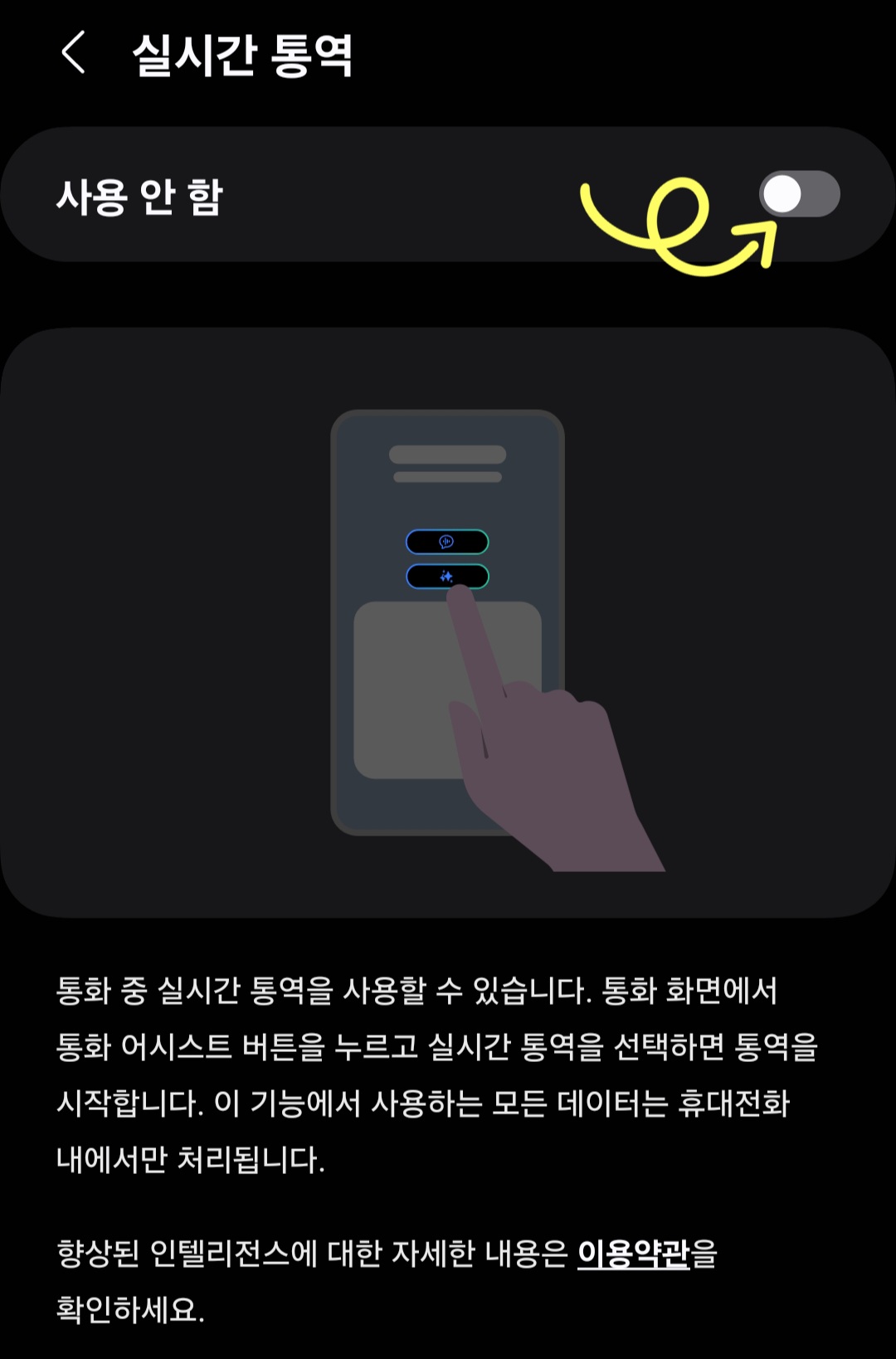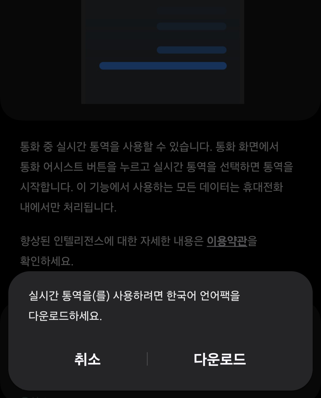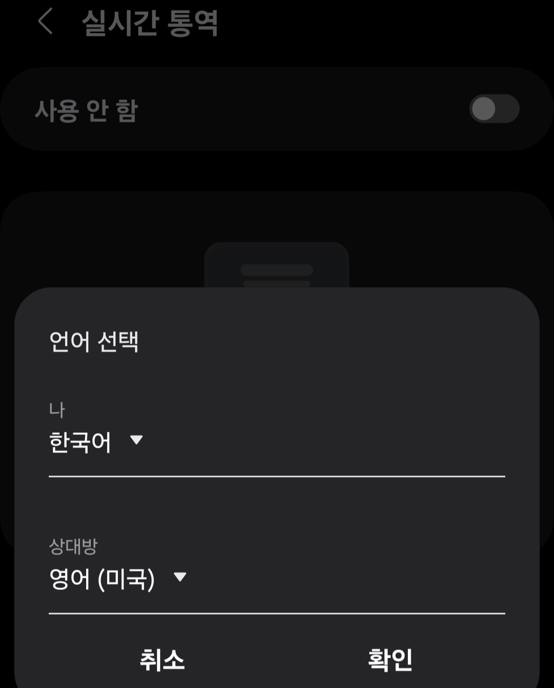 통화 중 실시간 통역 기능 설정