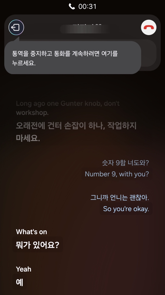 AI 통화 중 실시간 통역해 주는 기능 사용하면서 소설을 쓰길래 와이프랑 한바탕 웃었는데요. 이제 막 생긴 기능인만큼 조금 더 지켜봐야 하지 않을까라는 조심스러운 생각이 들었지만 차후 업데이트가 된다면 편리한 기능이 되지 않을까 생각하고 있답니다.