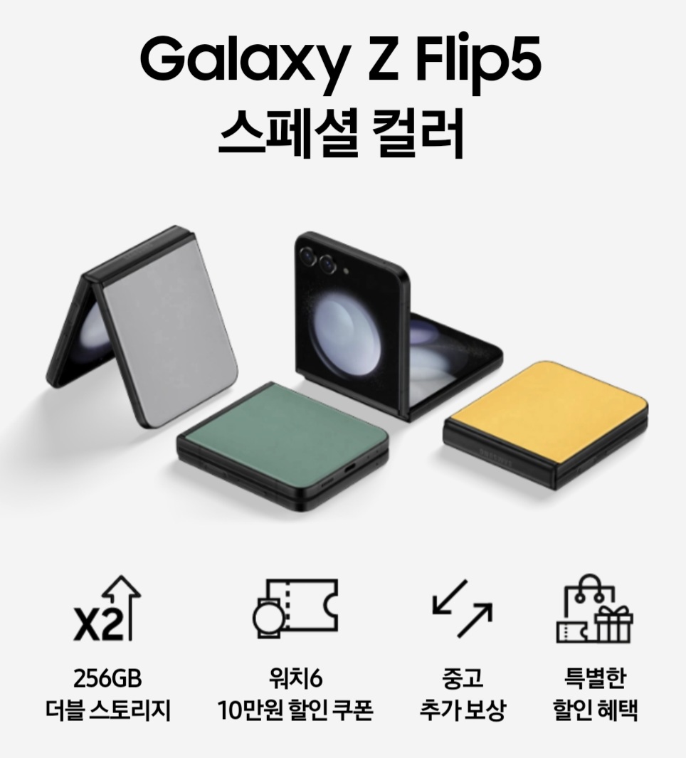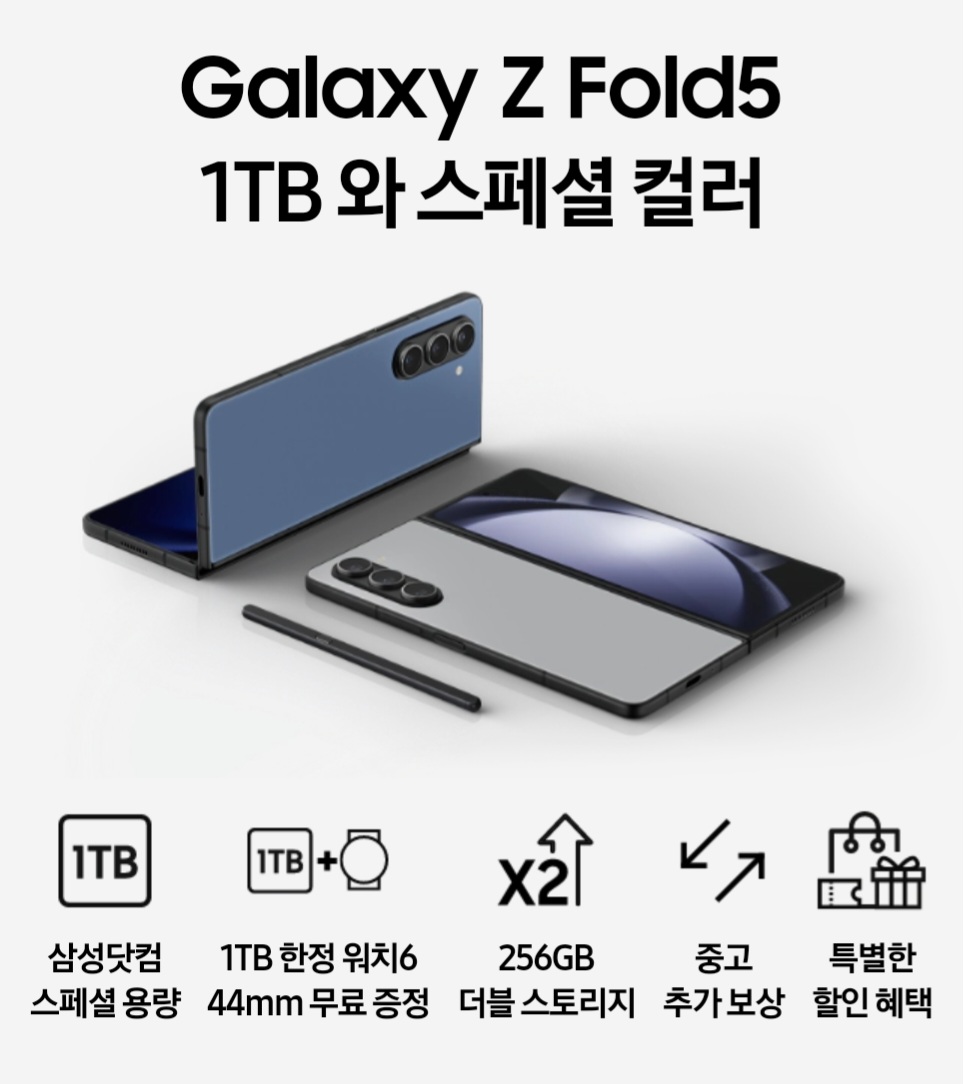 - 제트폴드5 제트플립5 256GB 모델을 구매하면 512GB 업그레이드해주는 더블 스토리지 혜택(512GB 사전예약 미진행)