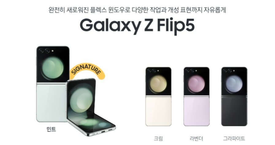 *갤럭시 제트플립5 또한 삼성닷컴 출고가 기준이며 실제혜택이 반영된 가격은 오프라인 매장 혹은 인터넷마다 다를 수 있으니 참고하시길 바랍니다.