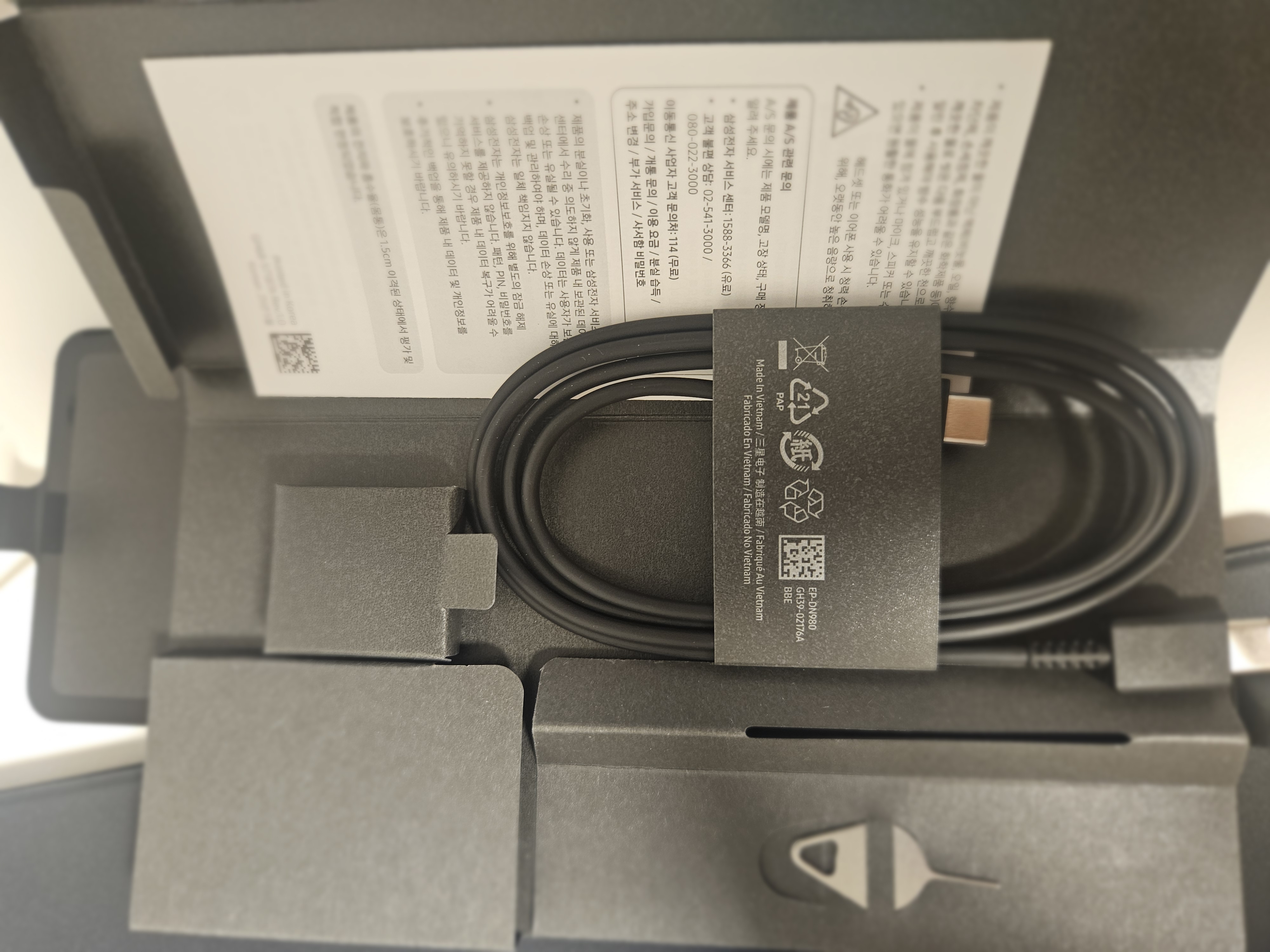 구성품은 간단하게 C to C 케이블, 핀, 설명서가 끝이었답니다. 사진상으론 회색느낌이 나지만 실제로 보면 깔끔한 민트색이라 과하지 않고 이뻤습니다.