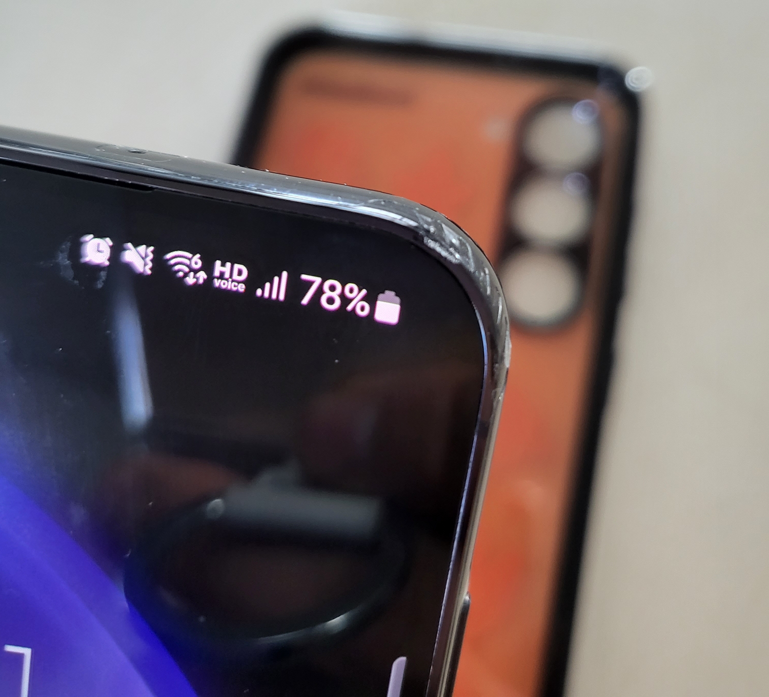 ▼나중에 핸드폰 재판매를 하기 위해 "흠집만 안 나면 되지 뭐"라고 생각하면서 사용하고 있었는데 이게 웬걸 상단 모서리 쪽이랑 하단 모서리 쪽에 잔기스도 아니고 아예 깎여 나갔더라고요. 그래서 케이스를 바로 구매해 버렸습니다.
