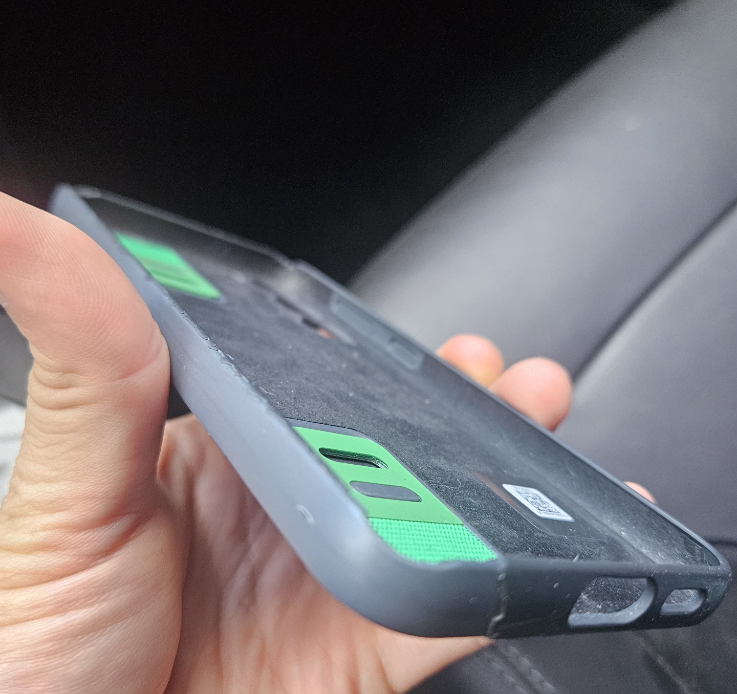▼현재하고 있는 일이 조금 험한 직업이서 그런 건지 보시는 것처럼 상단 실리콘 부분이랑 하단 그리고 뒷부분 실리콘 재질이 다 뜯어지고 벗겨져 버렸는데요.
