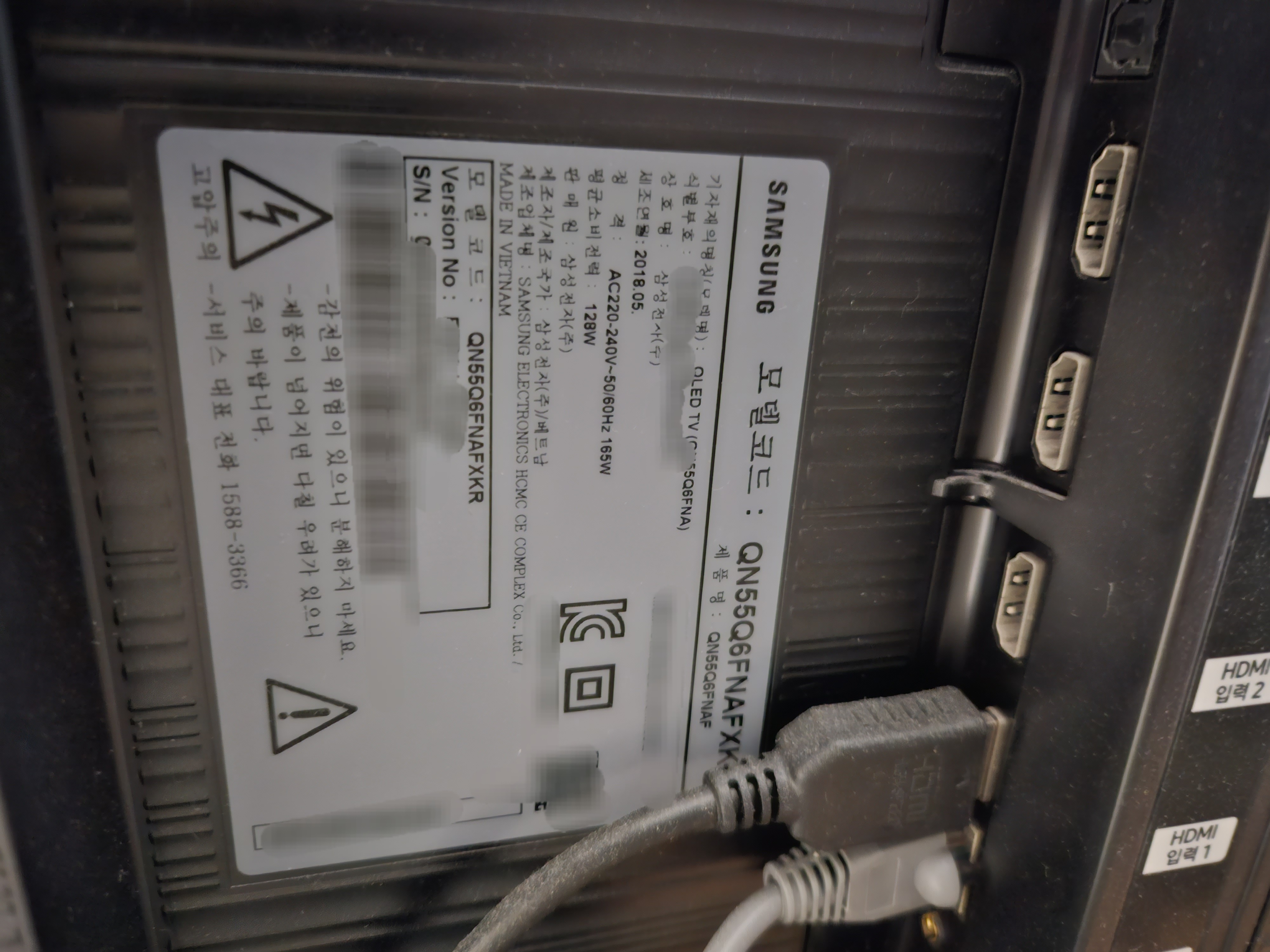 삼성 TV 후면 스티커 확인