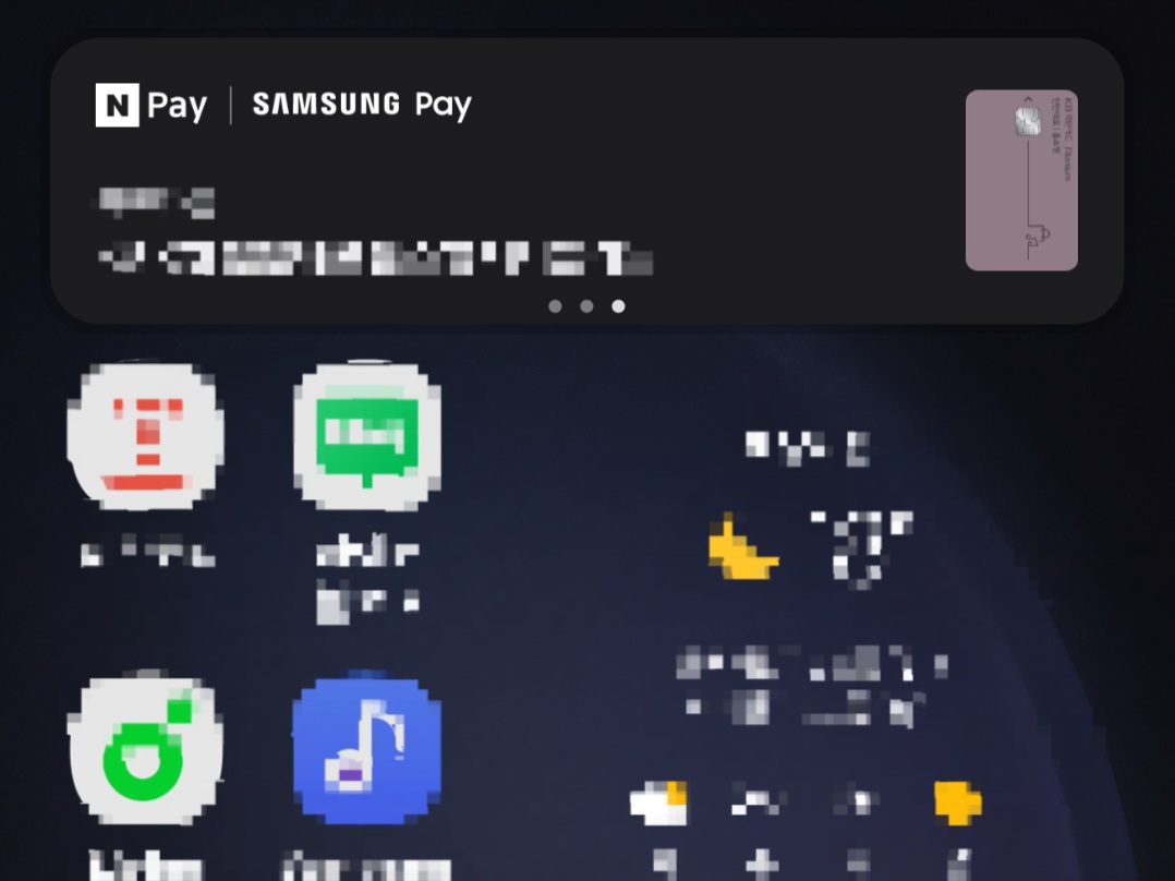 ▼위에 있는 혜택을 받으려면 앞서 말씀드렸다시피 네이버페이앱을 통해 삼성페이로 현장결제해야 하는데 아직 버릇이 안 돼서 그런지 그냥 일반 삼성페이로 결제하는 경우가 생기더라고요. 그래서 저는 밑에 있는 이미지처럼 위젯을 이용해 핸드폰 홈 화면에 꺼내놓고 사용하고 있답니다. 만약 저처럼 잘 까먹을 것 같다면 위젯을 이용해 보세요. 감사합니다.