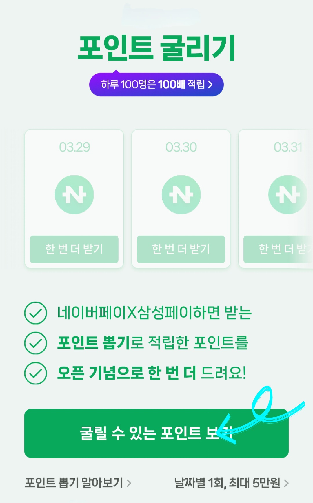 네이버페이X삼성페이 세 번째 혜택(포인트 굴리기)